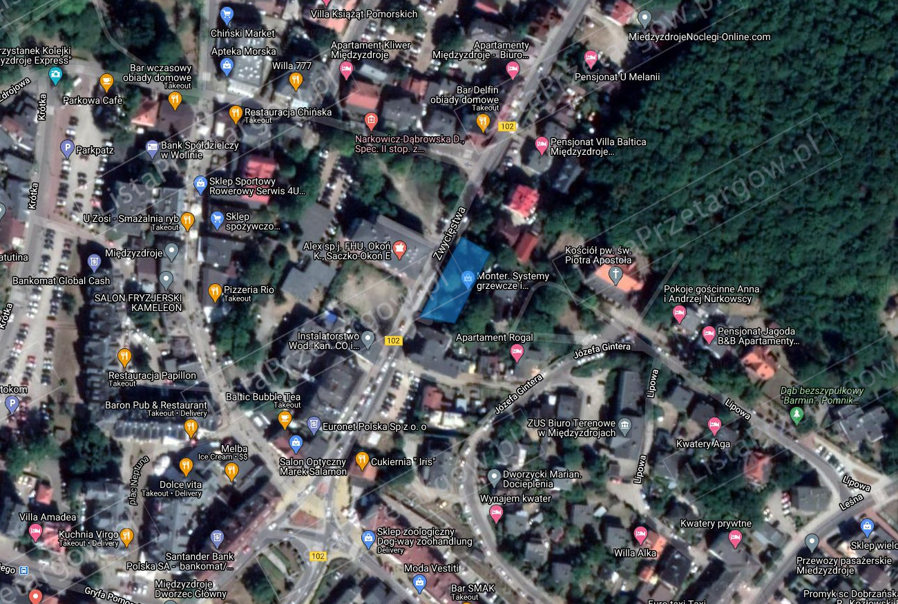 Nieruchomość niezbudowana położona w Międzyzdrojach, przy ulicy Zwycięstwa.