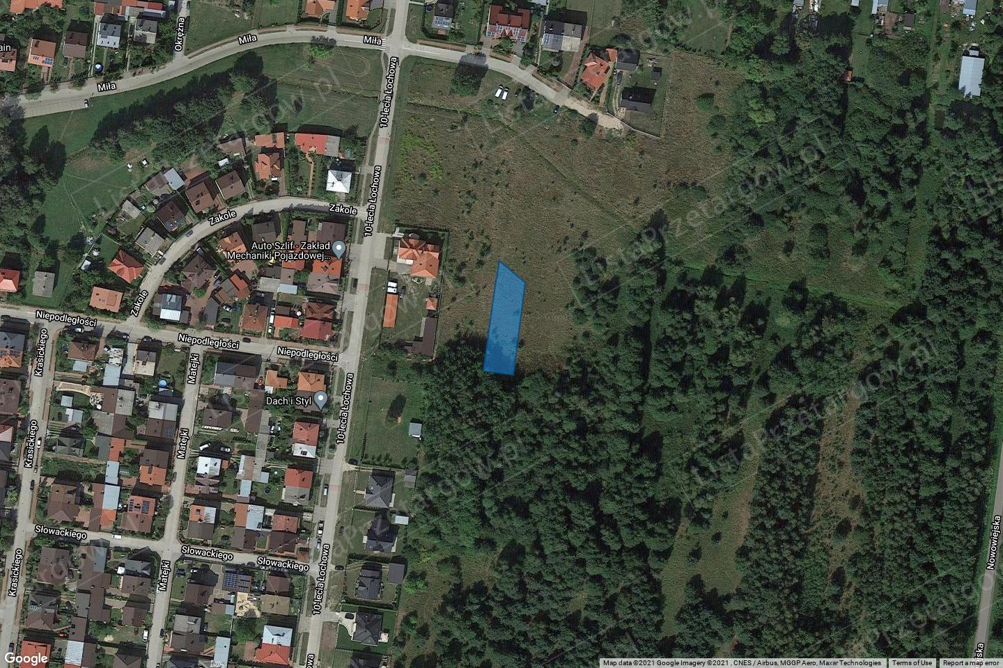 Działki powstały w wyniku podziału terenu pod osiedle mieszkaniowe. Położone są na terenach zakrzewionych samosiejką, która nie posiada wartości handlowej a likwidowany drzewostan może być wykorzystany na opał. Działki położone na przedłużeniu ul. Zakole i Niepodległości stanowią jeden kompleks składający się z pięciu działek o różnej długości i szerokości. Powyższe działki nie są uzbrojone, istnieje możliwość uzbrojenia nieruchomości korzystając z infrastruktury miejskiej. Ze względu na niekorzystnykształt są sprzedawane jako jedna nieruchomość. Dojazd do działek drogą gruntową. W miejscowym planie zagospodarowania przestrzennego działki znajdują się na terenach oznaczonych na rysunku planu symbolem „MN 1,56” co stanowi tereny zabudowy mieszkaniowej jednorodzinnej. Działki są w bliskim sąsiedztwie szkoły podstawowej oraz targowiska miejskiego.