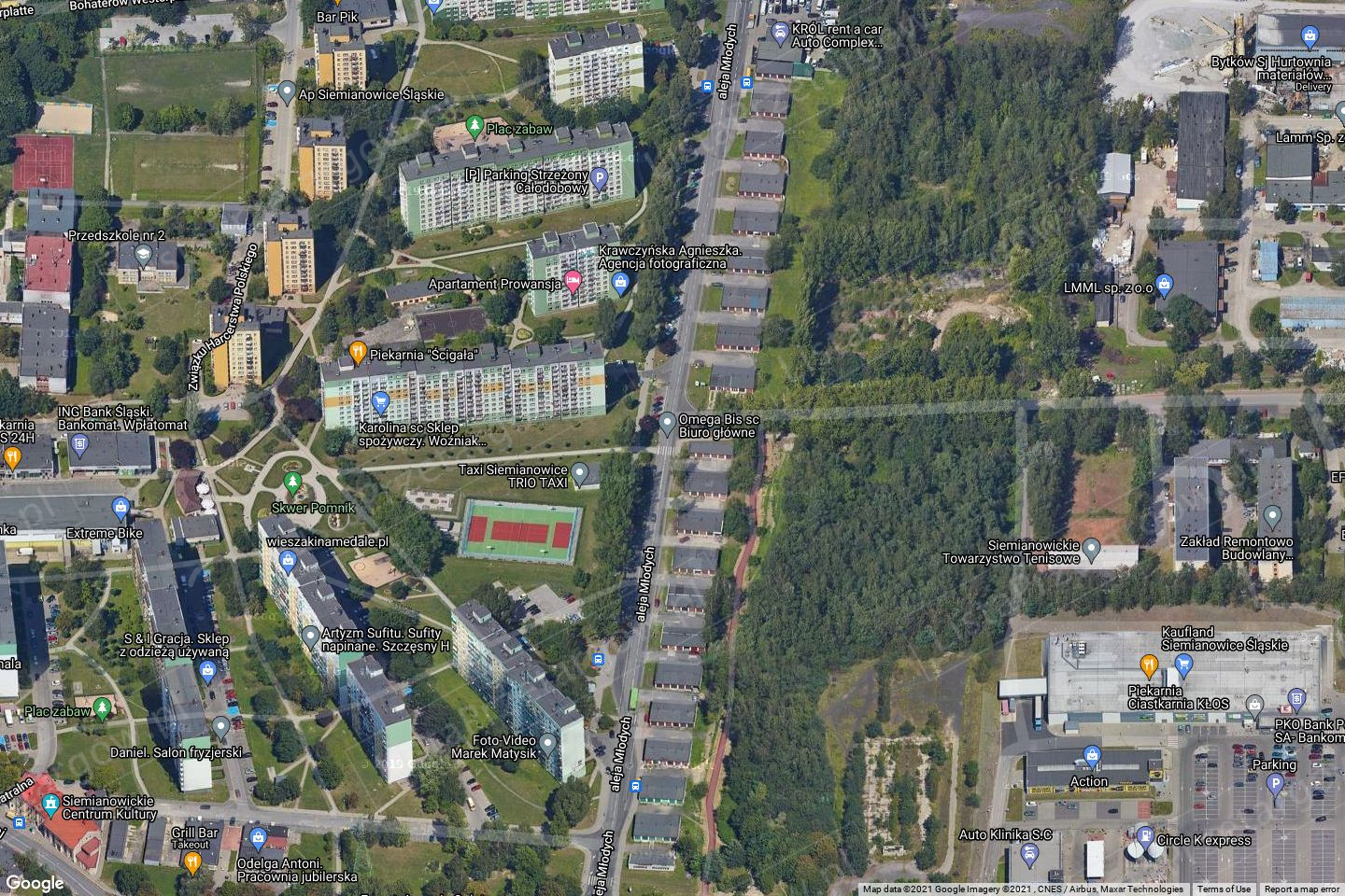 Następujące nieruchomości wyznaczone do przetargu położone są przy ul. Aleja Młodych, stanowią własność Gminy Miasta Siemianowice Śl.: