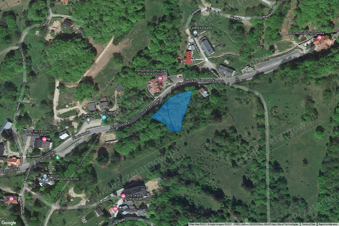 Opis nieruchomości: nieruchomość o nieregularnym kształcie, niezagospodarowana i w znacznej części porośnięta drzewami. Teren ze spadkiem w kierunku północnym, oddzielony od ulicy Piastowskiej skarpą. W ewidencji gruntów działka nr 346 o powierzchni 689 m2 oznaczona jest symbolem: Bp (tereny niezabudowane lub w trakcie zabudowy), natomiast działka nr 347 o powierzchni 1563 m2 oznaczona jest symbolem: PsVI (pastwiska) i Lzr-PsV (grunty zadrzewione i zakrzewione na użytkach rolnych).