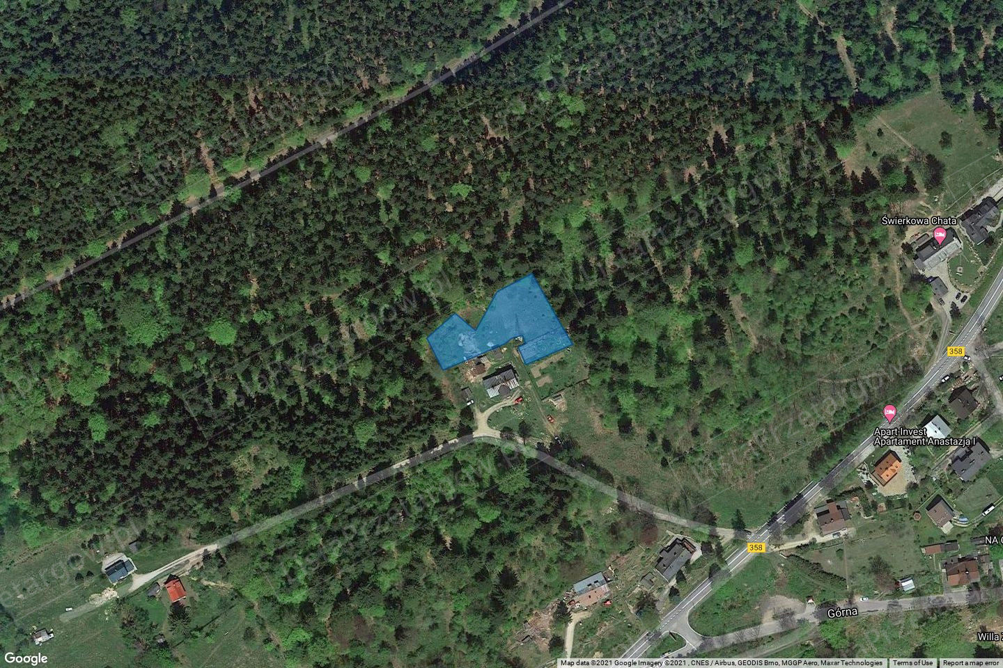 Nieruchomość niezabudowana położona w Szklarskiej Porębie na Osiedlu Podgórze w granicach działki gruntu nr 287/1 obr. 1 o powierzchni 1952 m2.