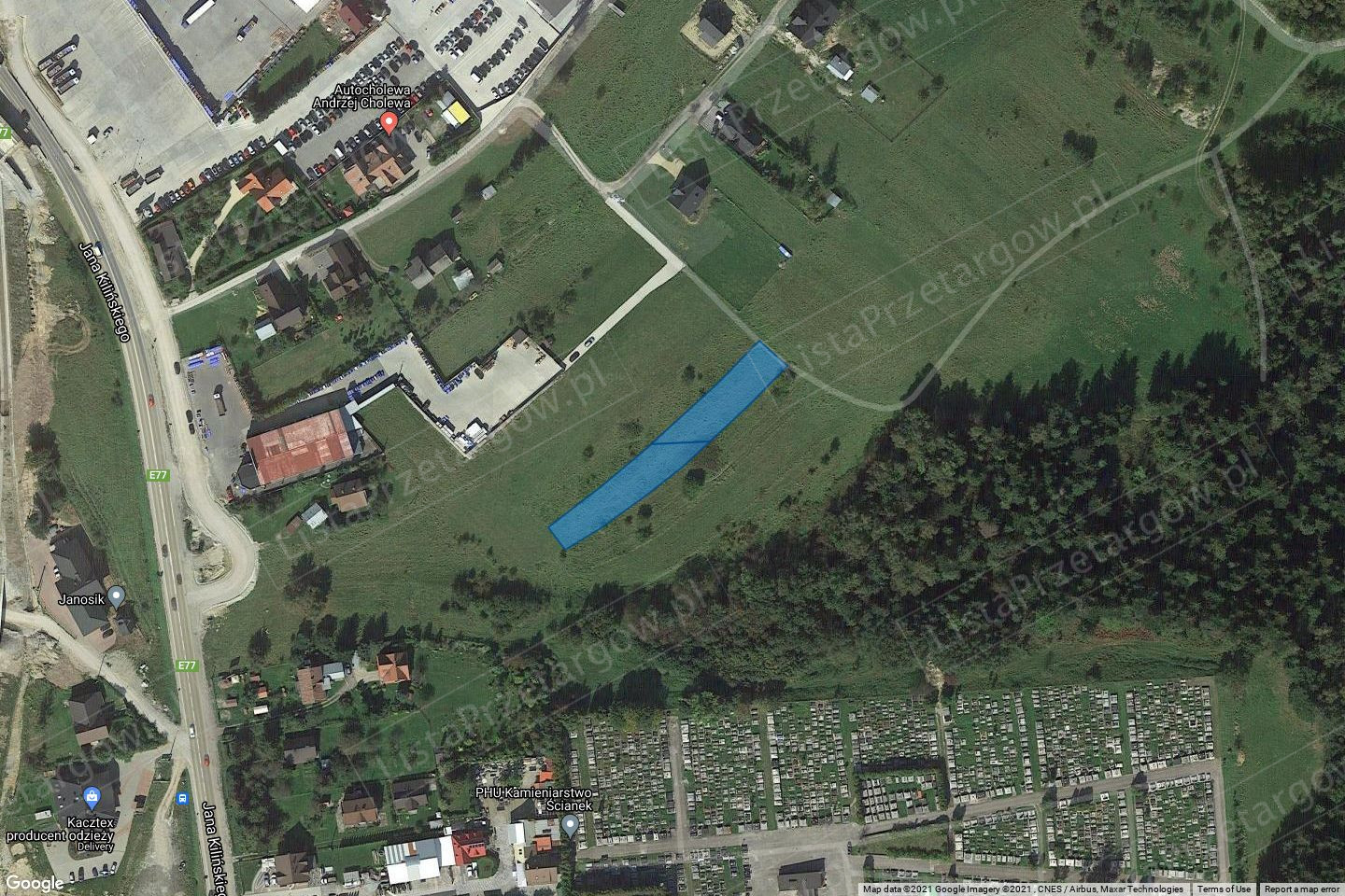 Nieruchomość zlokalizowana jest przy ul. Kilińskiego na południowy wschód od budynku mieszkalnego ul Kilińskiego 55, w odległości około 4,2 km od centrum miasta. Nieruchomość jest niezagospodarowana, stanowi teren zielony, niezalesiony, porośnięty krzewami. Dojazd do nieruchomości odbywa się poprzez nieurządzoną drogę wewnętrzną, usytuowaną na działkach 1852 i 1822/2, będących we współwładaniu osób prywatnych (brak jest prawnie uregulowanego dojazdu do nieruchomości). W najbliższym otoczeniu dominują tereny zielone i luźna zabudowa mieszkaniowa, jednorodzinna oraz obiekty handlowo-usługowo-produkcyjne.