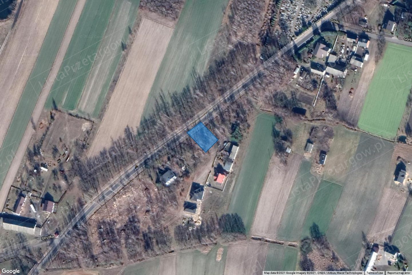 w miejscowości Górki; posiada dostęp do drogi powiatowej.