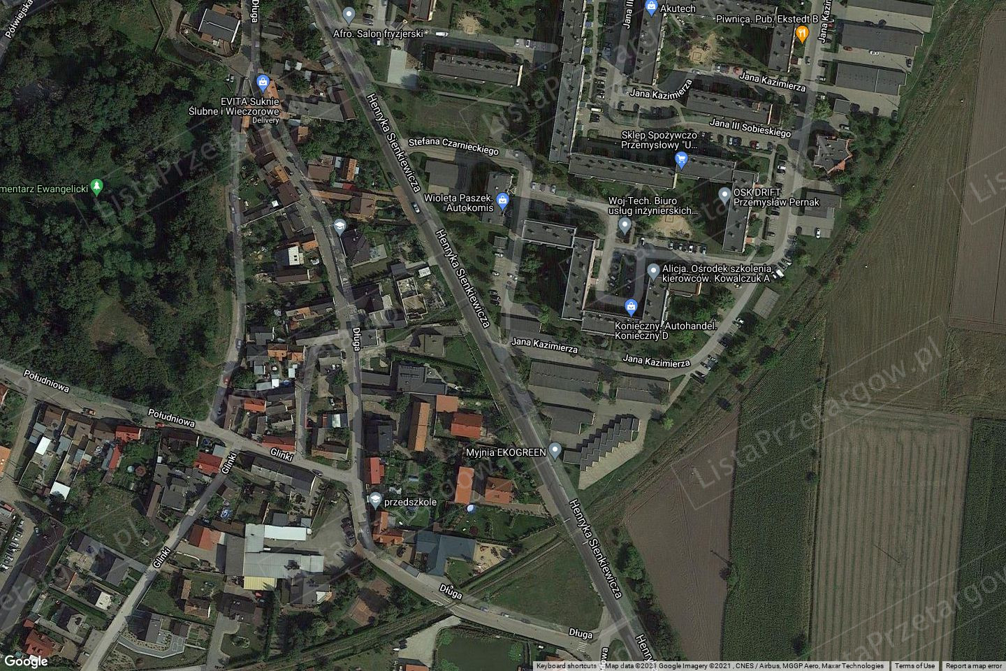Nieruchomość stanowiąca przedmiot przetargu posiada dostęp do powiatowej drogi publicznej 5505P tj. ul. H. Sienkiewicza oraz do gminnej drogi publicznej 810749P tj. ul. ks. Piotra Wawrzyniaka, jest niezabudowana, nieutwardzona, niezagospodarowana, częściowo zakrzaczona, a ponadto posiada możliwość podłączenia do sieci energetycznej.