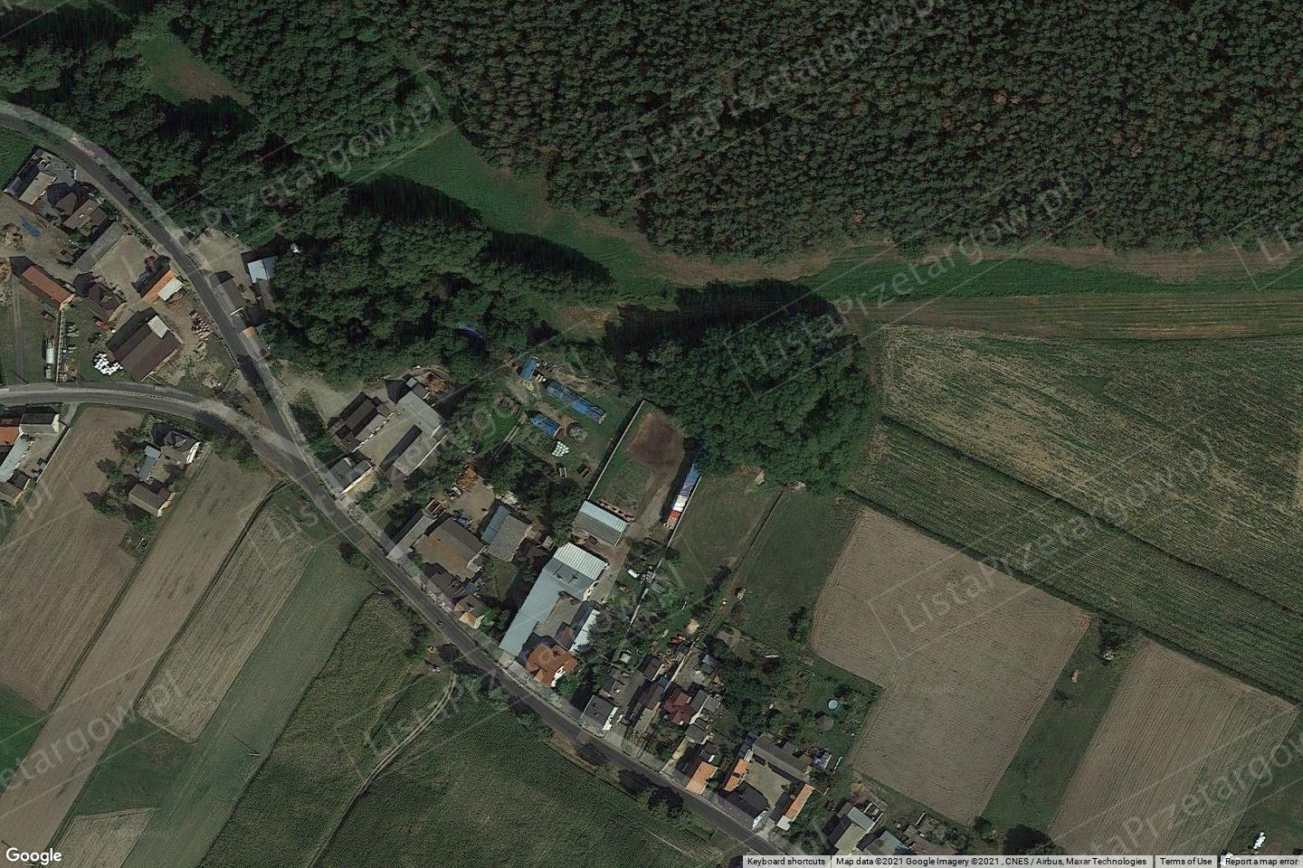 znajduje się zabudowa mieszkaniowo-zagrodowa i boisko sportowe. Przez działkę