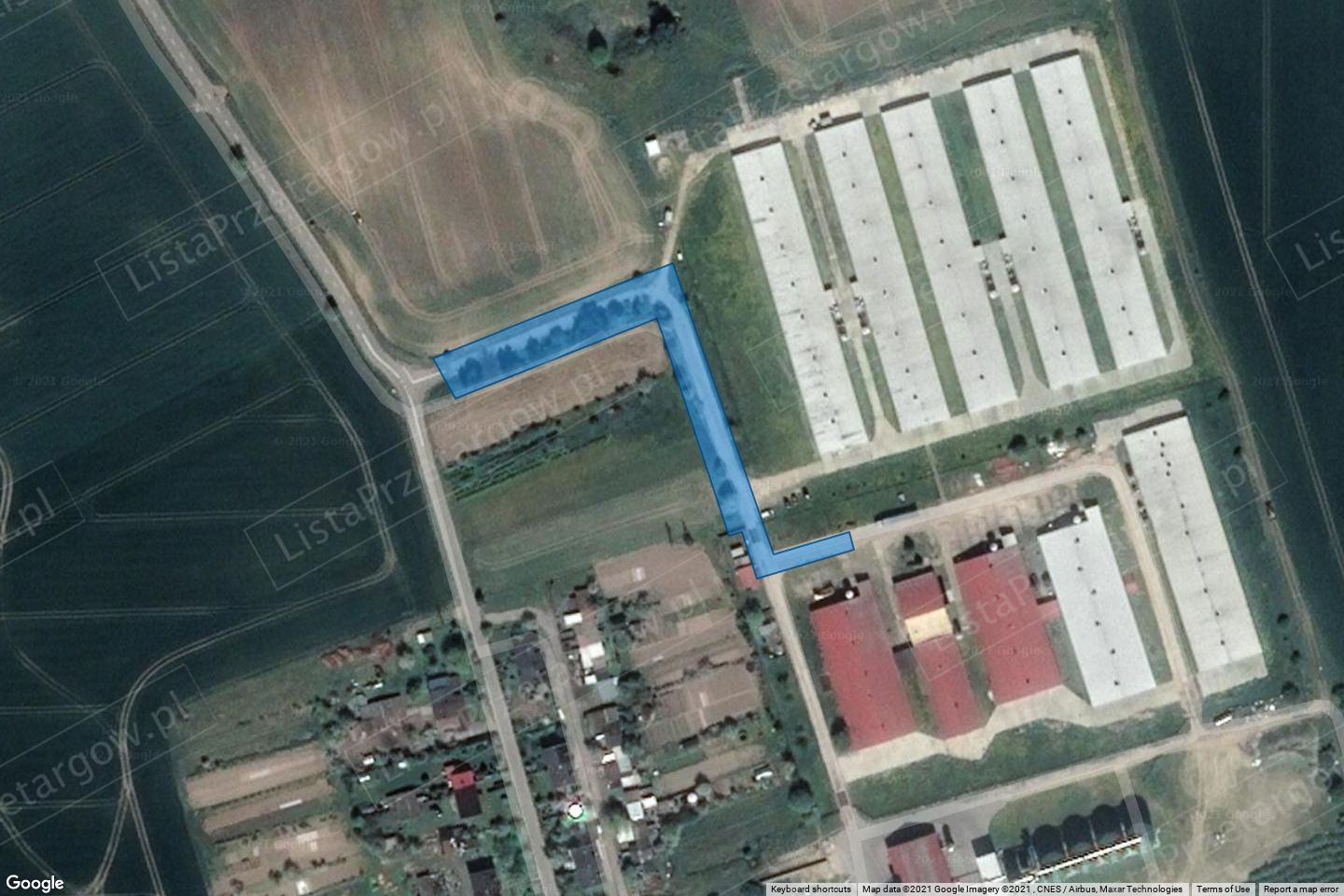 Działka leży w zasięgu sieci wodociągowej, linii energetycznej kablowej oraz gazociągu, posiada dostęp do drogi gminnej. Działka posiada kształt nieregularny, wydłużony. Teren działki stanowi drogę dojazdową do zabudowań fermy drobiu od zjazdu z drogi asfaltowej gminnej do bramy terenu zabudowanego budynkami kurników. Pas drogi ma urządzoną nawierzchnię utwardzoną z betonowych płyt drogowych na całej długości drogi o szer. 6,0 m. oraz pobocza o nawierzchni gruntowej, trawiastej.