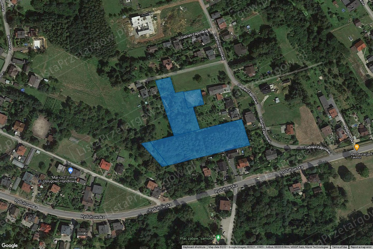 Przetarg nr 230-54/2020 – nieruchomość położona w Radlinie, przy ul. Gabrieli Zapolskiej o łącznej powierzchni 0,9110 ha, zapisana w księdze wieczystej XXXX/XXXXXXXX/X, prowadzonej przez Sąd Rejonowy w Wodzisławiu Śląskim, w skład której wchodzą: