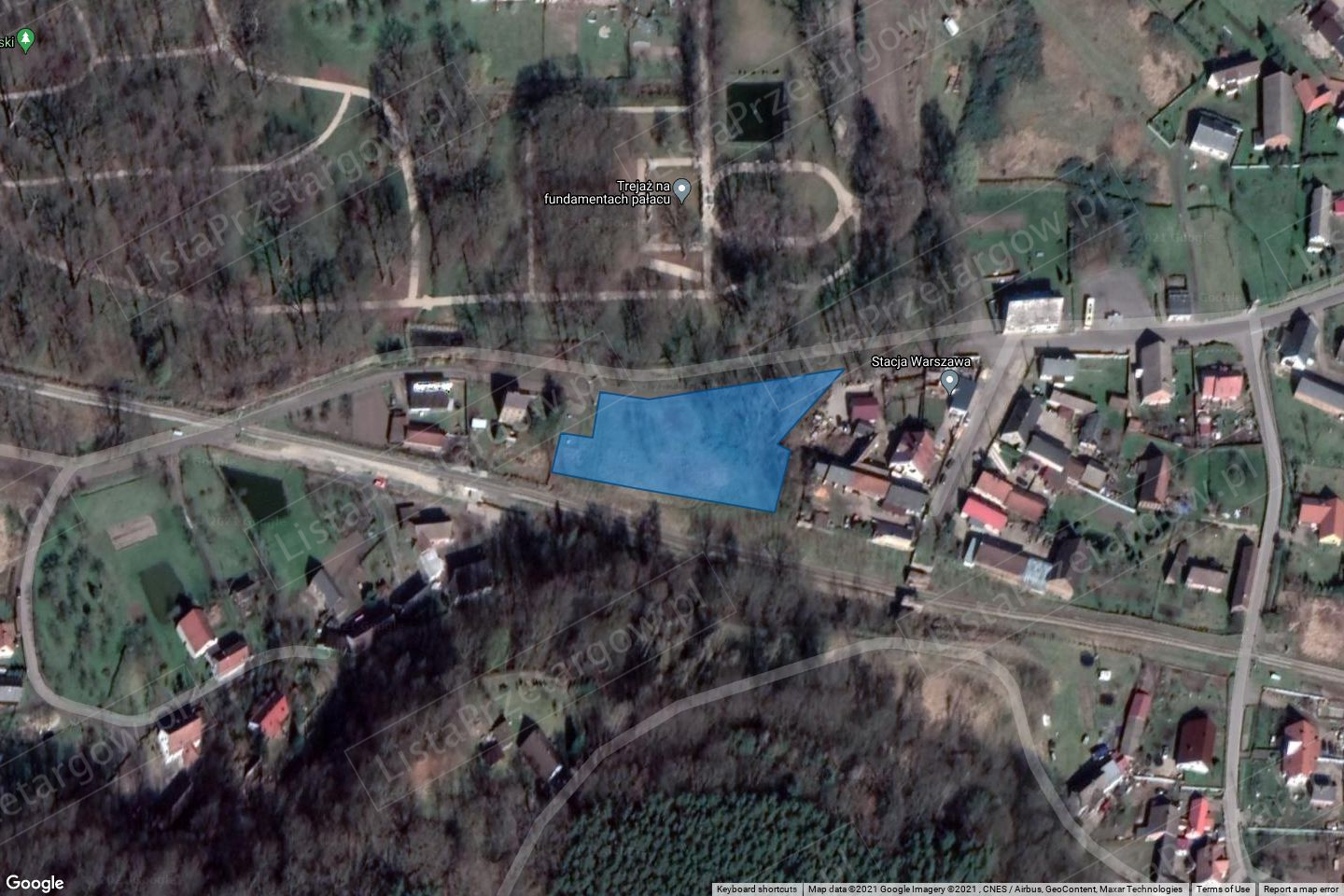 Opis nieruchomości: Nieruchomość składa się z jednej działki polożonej przy końcu miejscowości Laski od strony zachodniej i wschodniej działka graniczy z nieruchomościami zabudowanymi. Kształt działki w miarę foremny - przypominający prostokąt. Od strony północnej dłuższym bokiem graniczy bezpośrednio z drogą asfaltową, za którą znajduje się zabytkowy park. Przeciwległy bok sąsiaduje z czynną linią kolejową nr 358 relacji Zbąszynek - Gubin. Od strony zachodniej znajduje się mała ogrodzona działka z przepompownią ścieków. Dojazd i dostęp do nieruchomości dobry. Działka obecnie nie jest użytkowana. W części wschodniej występują zakrzaczenia i większe drzewa. Teren działki lekko nachylony ku drodze, pofałdowany, nie podmokły i nie grząski. Dwa krótsze boki ogrodzone. W bliskości przebiegają media. Przy granicy z drogą znajduje się słup betonowy energetyczny.