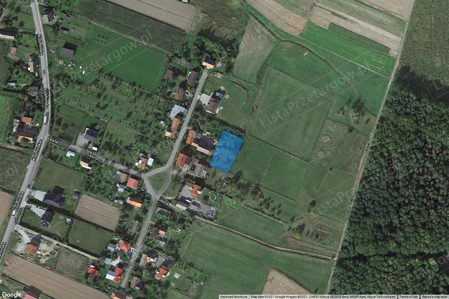 w wys. 1/4 w działce nr 348/1- Obręb Kośmin o pow. 0,0924 ha przy ul. Leśnej