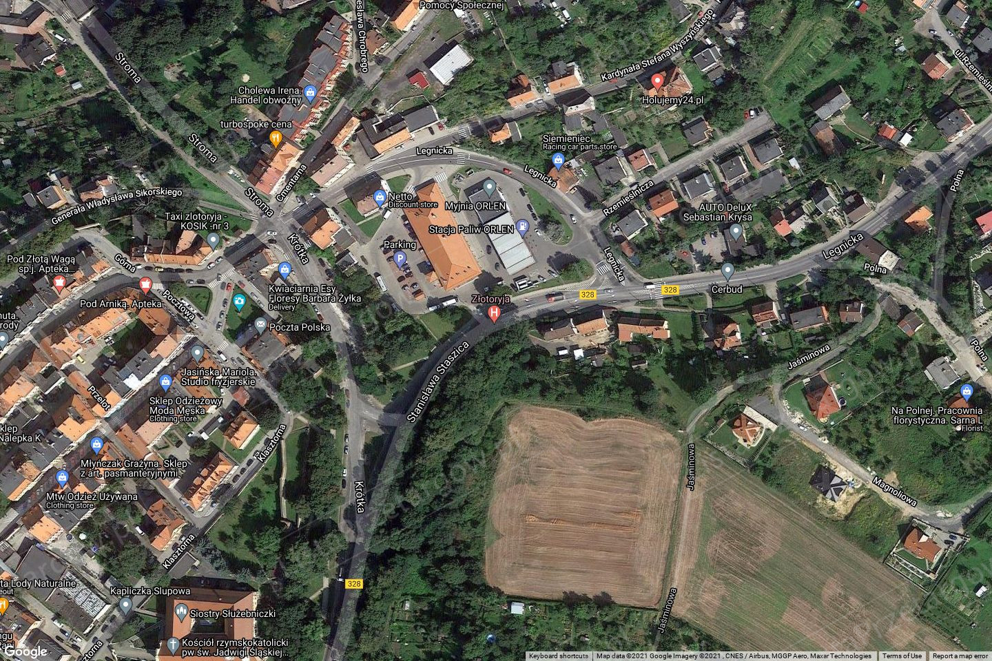 Przeznaczenie w miejscowym planie zagospodarowania przestrzennego miasta Złotoryja - podjętym uchwałą Rady Miejskiej w Złotoryi Nr XXVII/175/04 z dnia 8 grudnia 2004 r. (Dz. Urz. Woj. Dolnośląskiego Nr 263, poz. 4654 z dnia 31.12.2004 r.) zmienionym uchwałą Nr IX/56/2007 Rady Miejskiej w Złotoryi z dnia 14 czerwca 2007 r. (Dz. Urz. Woj. Dolnośląskiego Nr 185, poz. 2390 z dnia 2 sierpnia 2007 r.): 27P,P/U,UC – obszar projektowanej strefy aktywności gospodarczej z dopuszczeniem lokalizacji wielkopowierzchniowych obiektów handlowych;