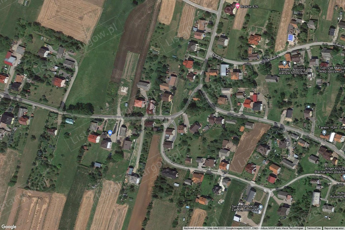 Działka położona jest we wschodniej części miejscowości Brzezie przy granicy z gminą Wielka Wieś, w bliskiej odległości od miasta Kraków - do ścisłego centrum około 9 km, w bezpośrednim sąsiedztwie centrum logistycznego i terenów niezabudowanych. Wschodnia granica działki nr 390/2 przylega do działki znajdującej się w gminie Wielka Wieś, miejscowość Modlniczka.