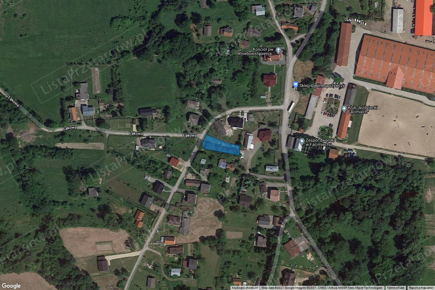 Przedmiotowa nieruchomość jest niezabudowana, zlokalizowana jest w północnej części gminy, w miejscowości Facimiech. Bezpośrednie otoczenie stanowi zabudowa mieszkaniowa jednorodzinna, w pobliżu znajduje się klub jeździecki. Kształt działki lekko nieforemny, teren płaski. Działka porośnięta jest drzewami – są to samosiejki bez wartości użytkowej. Przez teren działki przebiega sieć gazowa. Działka posiada dostęp do drogi.