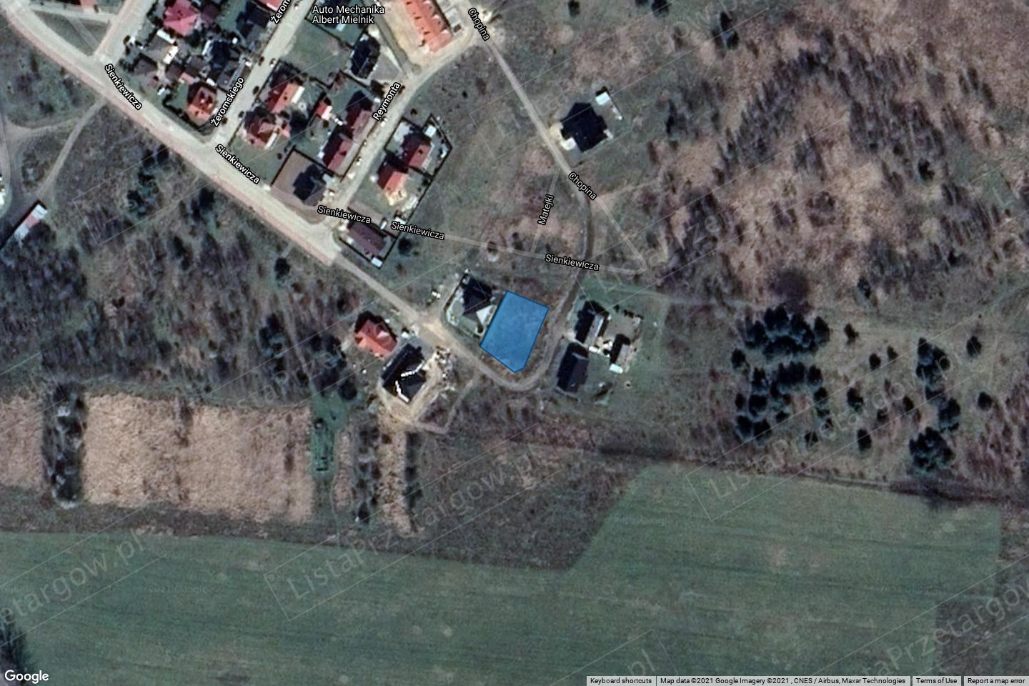 Działka nr 723, położona w obrębie 080406_4.0001,1 przy ul. Chopina w Nowym Miasteczku, teren niezabudowany, opis użytku: zurbanizowane tereny niezabudowane lub w trakcie zabudowy, symbol klasoużytku - Bp