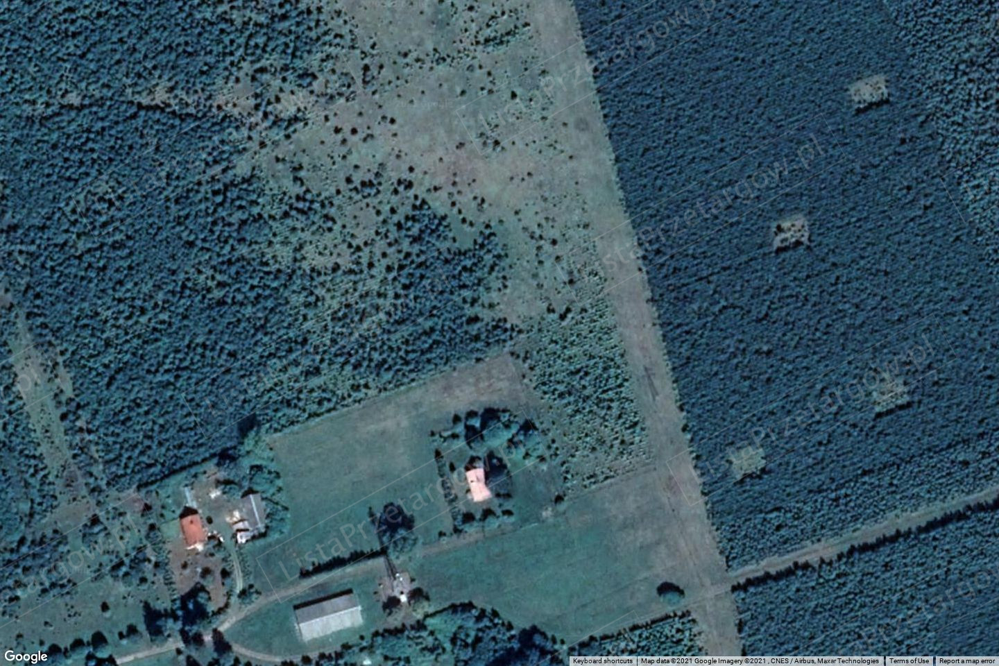 prywatnej oddzielona żywopłotem z nasadzeń drzew iglastych, brak jednak znamion użytkowania. Na pozostałej