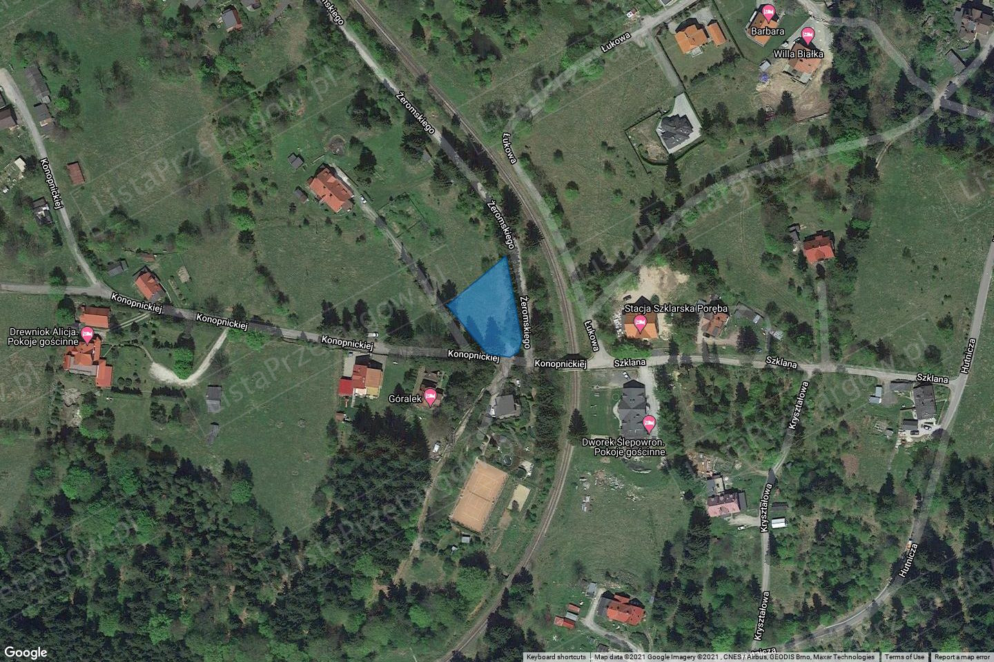 Przeznaczenie nieruchomości i sposób jej zagospodarowania: nieruchomość znajduje się na terenie objętym ustaleniami miejscowego planu zagospodarowania przestrzennego dla terenów w obszarze ulic Franciszkańskiej, Demokratów, Konopnickiej, Sikorskiego i Żeromskiego w Szklarskiej Porębie (uchwała Rady Miejskiej w Szklarskiej Porębie nr LVIII/639/18 z 29 czerwca 2018 r. — https://szklarskaporeba.bip.net.pl/?a=11787).