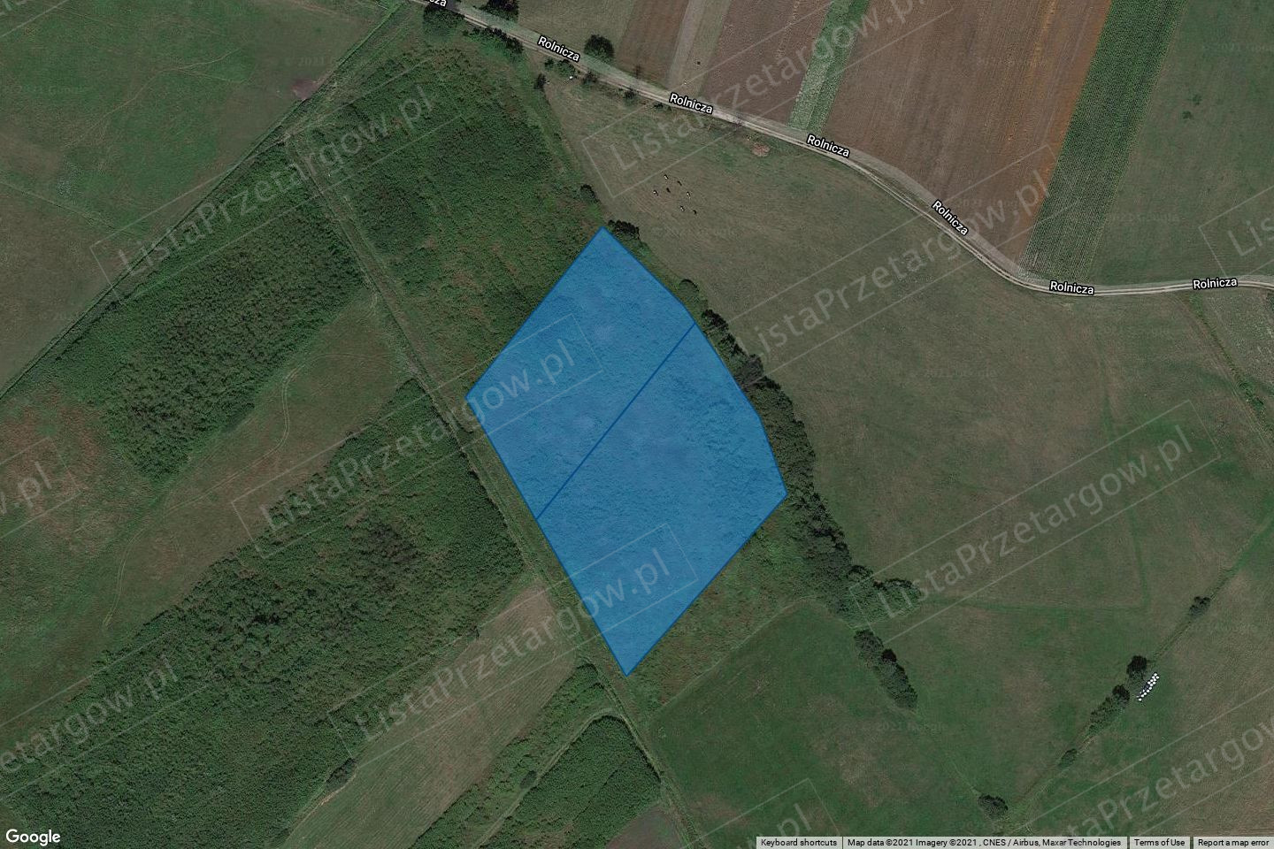 działka nr 1070 o powierzchni 0,5900 ha, która wg. ewidencji z rejestru gruntu stanowi łąki - ŁIII. Kształt działki prostokątny o średniej szerokości około 55 m i długości 91 m. Teren działki o stosunkowo jednorodnej rzeźbie terenu, od strony granicy zachodniej działka przylega do polnej drogi dojazdowej o nawierzchni gruntowej od strony granicy zachodniej działka przylega do polnej drogi dojazdowej o nawierzchni gruntowej od granicy wschodniej do rowu roztopowego, położona w odległości około 1,5 km od zabudowy mieszkaniowej i gospodarskiej. Teren nieogrodzony, obszar działki pokryty roślinnością typu wierzba wiciowata. Działka nie jest wyposażona w jakiekolwiek urządzenia infrastruktury technicznej.