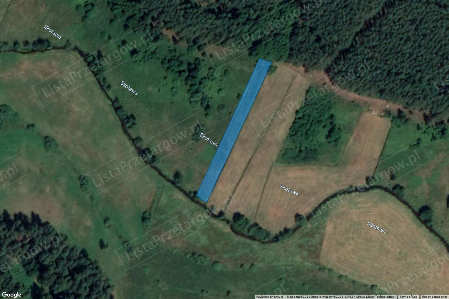 wśród użytków zielonych nad rzeką Skotawą, w gminie