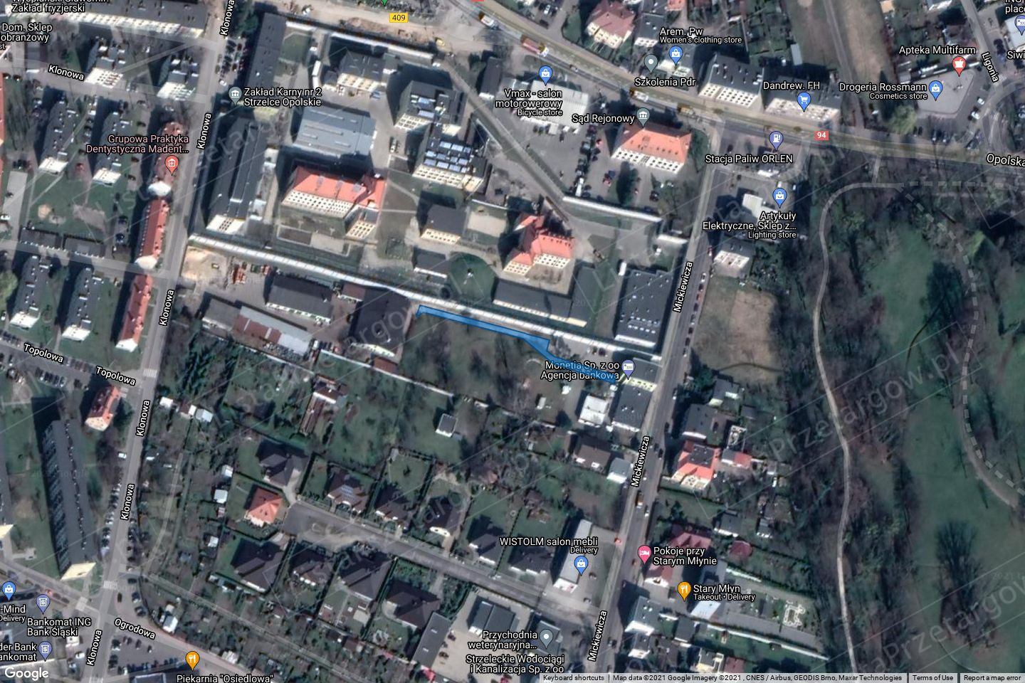 Nieruchomość położona w województwie opolskim, w gminie Strzelce Opolskie, w odległości, około 500 m od ścisłego centrum miasta. W sąsiedztwie nieruchomości znajdują się tereny usługowe, mieszkaniowo-usługowe, zabudowy mieszkaniowej jednorodzinnej i wielorodzinnej oraz infrastruktury technicznej. W dalszym otoczeniu znajduje się ścisła zabudowa miejska. Nieruchomość można scharakteryzować jako teren wysoko zurbanizowany, o charakterze rozwojowym oraz korzystnej dostępności komunikacyjnej (samochodowej oraz komunikacji miejskiej)