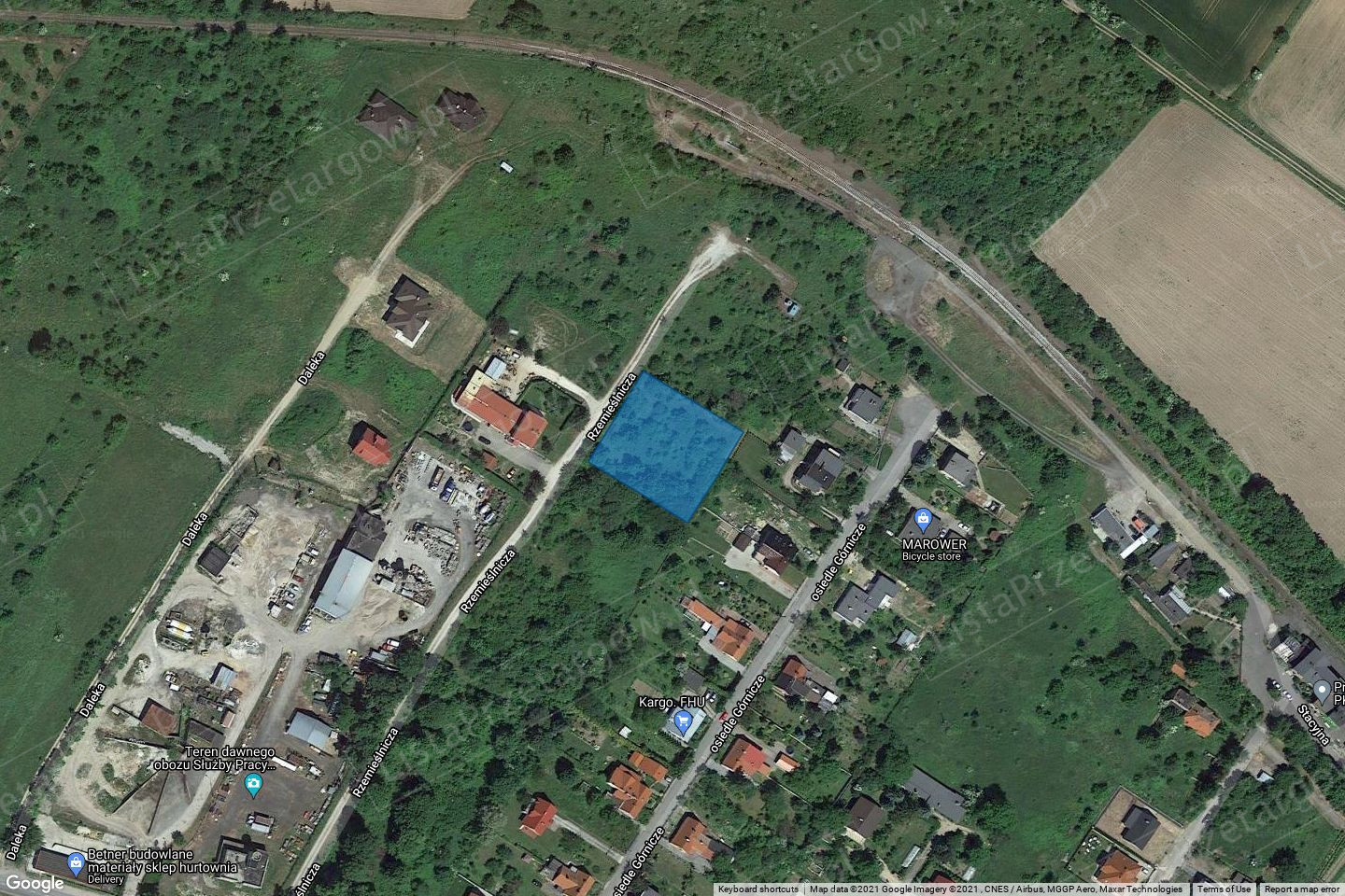 R-RV(1137m2), R-RIVb (889m2). Działka gruntu położona jest w sąsiedztwie nieruchomości zabudowanych domami jednorodzinnymi od wschodu oraz zabudowanymi terenami przemysłowymi od zachodu i stanowi teren niezagospodarowany. Nieruchomość jest zakrzewiona co utrudnia wykorzystanie. Nieruchomość jest nieogrodzona i nieuzbrojona. Sieć wodna, elektryczna, kanalizacyjna oraz gazowa znajdują się w obrębie ul. Chopina i Osiedla Górniczego. Działka przylega od zachodu do drogi utwardzonej ul. Rzemieślniczej.