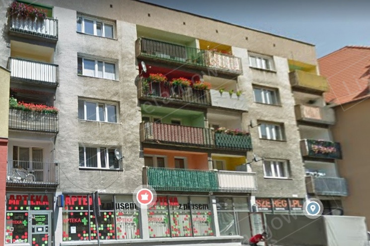 Mieszkanie położone na drugim piętrze w budynku wielorodzinnym zlokalizowanym w strefie centralnej miasta, w pobliżu Rynku. W otoczeniu znajduje się zwarta zabudowa mieszkaniowa wielorodzinna z usługami w parterach budynków. Lokal mieszkalny położony na III piętrze, składający się z jednego pokoju, kuchni, przedpokoju, łazienki z WC oraz pomieszczenia przynależnego – piwnicy o powierzchni 3,05m². Działka nr 1955,