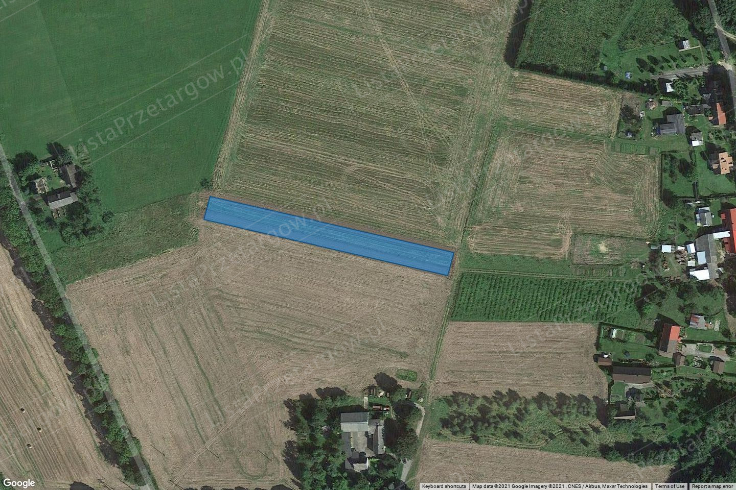 wsi. Działka jest użytkowana rolniczo - na gruncie zasiew zboża jarego. Teren wyrównany. Kształt działki