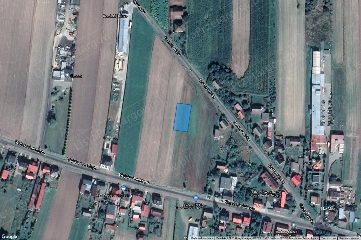 2) opis nieruchomości: nieruchomość położona przy skrzyżowaniu ulic Wojska Polskiego i Szemrowickiej w granicach terenu zabudowanego i gruntów rolnych, przy drodze relacji Dobrodzień-Lubliniec-Częstochowa, lokalizacja średnia, teren obniżony, dojazd z drogi asfaltowej: sieć elektryczna, wodociągowa; kanalizacja; sąsiedztwo: zabudowa mieszkaniowa jednorodzinna, zagrodowa; kształt regularny / zbliżony do prostokąta /,