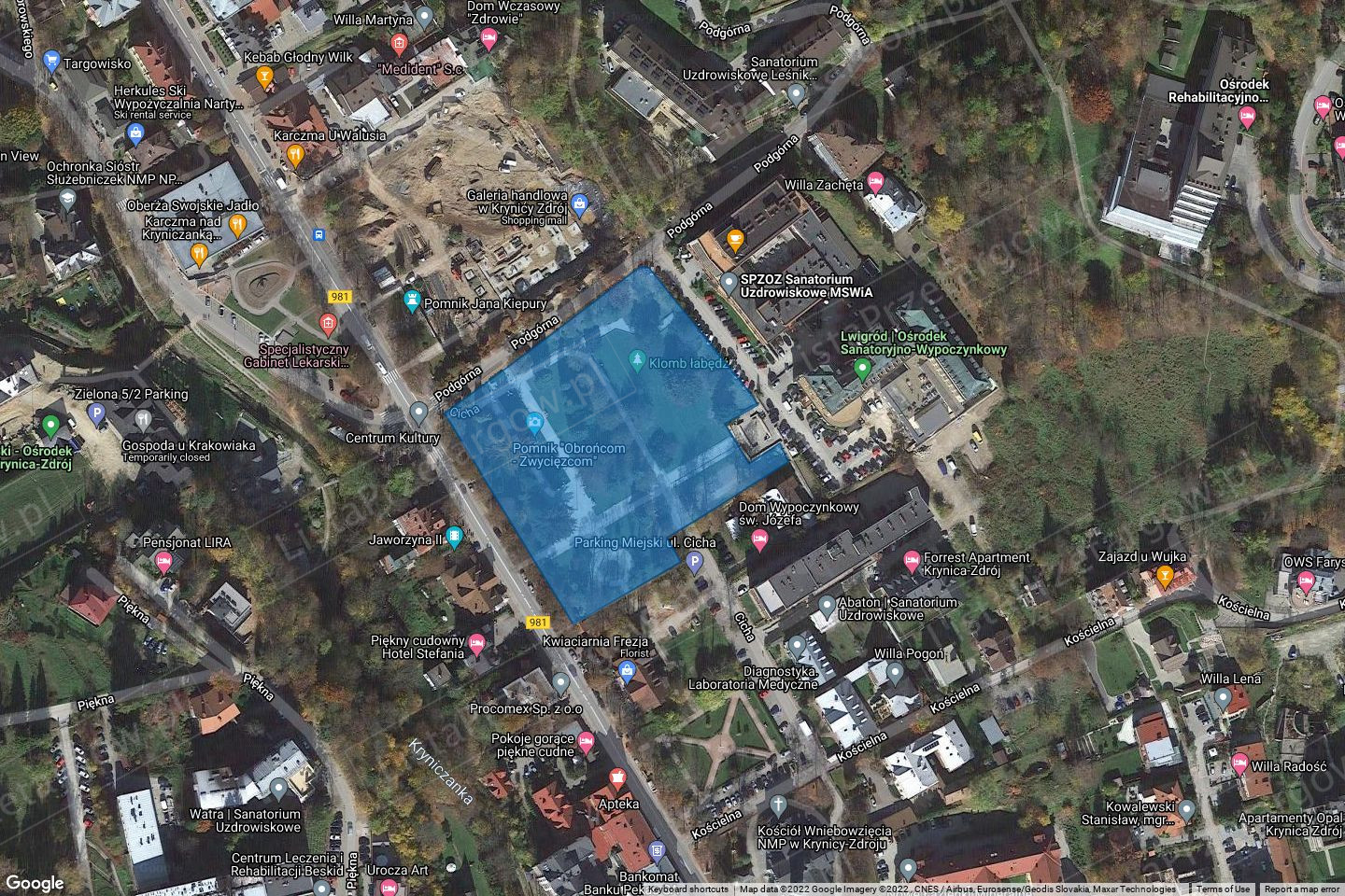 1/2 w nieruchomości gruntowej objętej Księgą Wieczystą nr XXXX/XXXXXXXX/X stanowiącej działkę nr 1416 o powierzchni 0,0223 ha zlokalizowaną w Krynicy Wieś,
