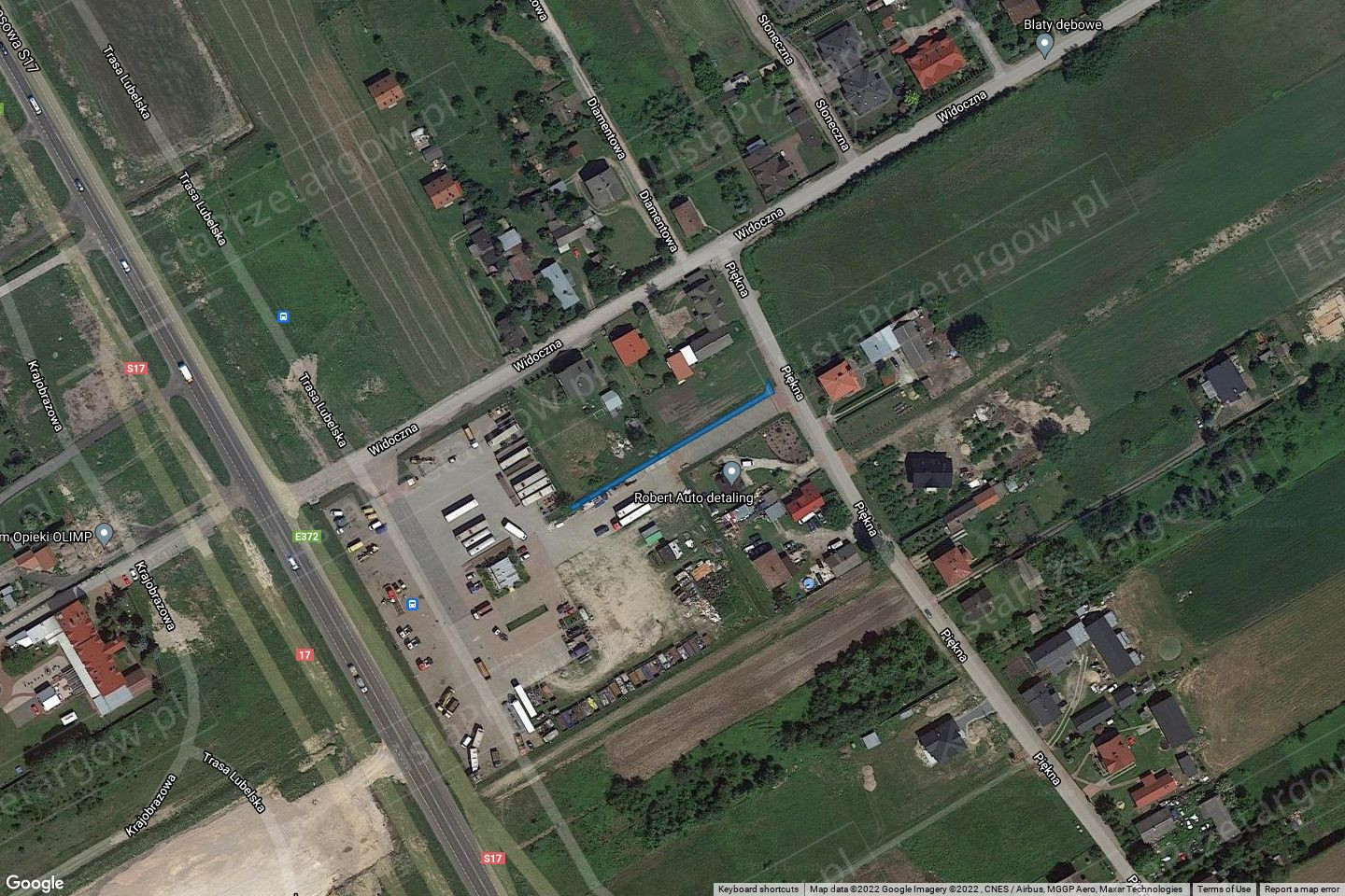 Przedmiot przetargu stanowi nieruchomość gruntowa bedąca działką ewidencyjną nr 240/8 o pow. 107 m˛, oraz dz.ew. 240/10 o po. 69 m˛, łączna powierzchnia 176 m˛, obręb 15 Majdan, położona w miejscowości Majdan, przy ul. Pięknej, pow. otwocki, woj. mazowieckie. Nieruchomość jest niezabudowaną działką, obecnie stanowiącą trawnik przy drodze wjazdowej. Nieruchomość administracyjnie położona jest w miejscowości Majdan, gm. Wiązowna przy ul. Pańskiej. . Działka ew. 240/8 o pow. 107 m˛ posiada kształt zbliżony do wydłużonego prostokąta. Długość działki wynosi ok 52 m, szerokość w najwęższym miejscu ok 2 m, w najszerszym miejscu ok 6 m. Działka jest niezabudowana nieogrodzona i porośnięta trawą. Teren działki płaski. Działka ew. 240/10 o pow. 69 m˛ posiada kształt zbliżony do wydłużonego prostokąta. Długość działki wynosi ok 40 m, szerokość ok 2 m. Działka jest niezabudowana nieogrodzona i porośnięta trawą Teren działki płaski. Działki są ze sobą połączone mogą stanowić jedną całość. Działki zostały stworzone pod poszerzenie drogi dojazdowej do działki sąsiedniej, jednakże obecnie nie są one wykorzystywane. Na działkach znajduje się trawnik. Działka ew. 240/8 na obszarze 3 m˛ jest utwardzona kostkąbetonową, znajduje się na niej część wjazdu. Działki posiadają dostęp do uzbrojenia terenu w postaci: energii elektrycznej, wodociągowej, kanalizacyjnej. W pobliżu również przebiega gazociąg. Na działce ew. 240/8 i 240/10 zlokalizowana jest ziemna linia energetyczna oraz na dz.ew. 240/8 znajduje się studzienka kanalizacyjna, na dz.ew. 240/10 znajduje się studzienka wodociągowa. Na działkach znajdują się słupy energetyczne.
