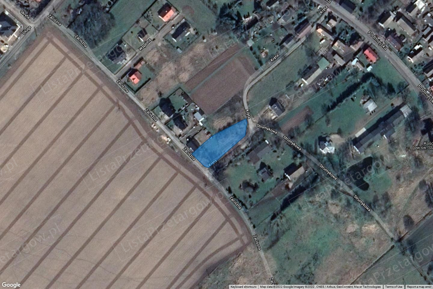 z urządzeniami towarzyszącymi obiektom budowalnym. Działka obecnie niezagospodarowana, o kształcie foremnym, umożliwiającym dogodne zagospodarowanie. Lokalizacja bardzo atrakcyjna. Dojazd ul. Podmiejską (nawierzchnia asfaltowa), następnie ul. Krętą na krótkim odcinku (płyty „Jumbo”). Uzbrojenie w sieć: wodna, sanitarna, elektryczna i gazowa, znajdują się w drodze przy granicy działki. Na działce usytuowany jest słup energetyczny betonowy i nad działką przebiega linia energetyczna.