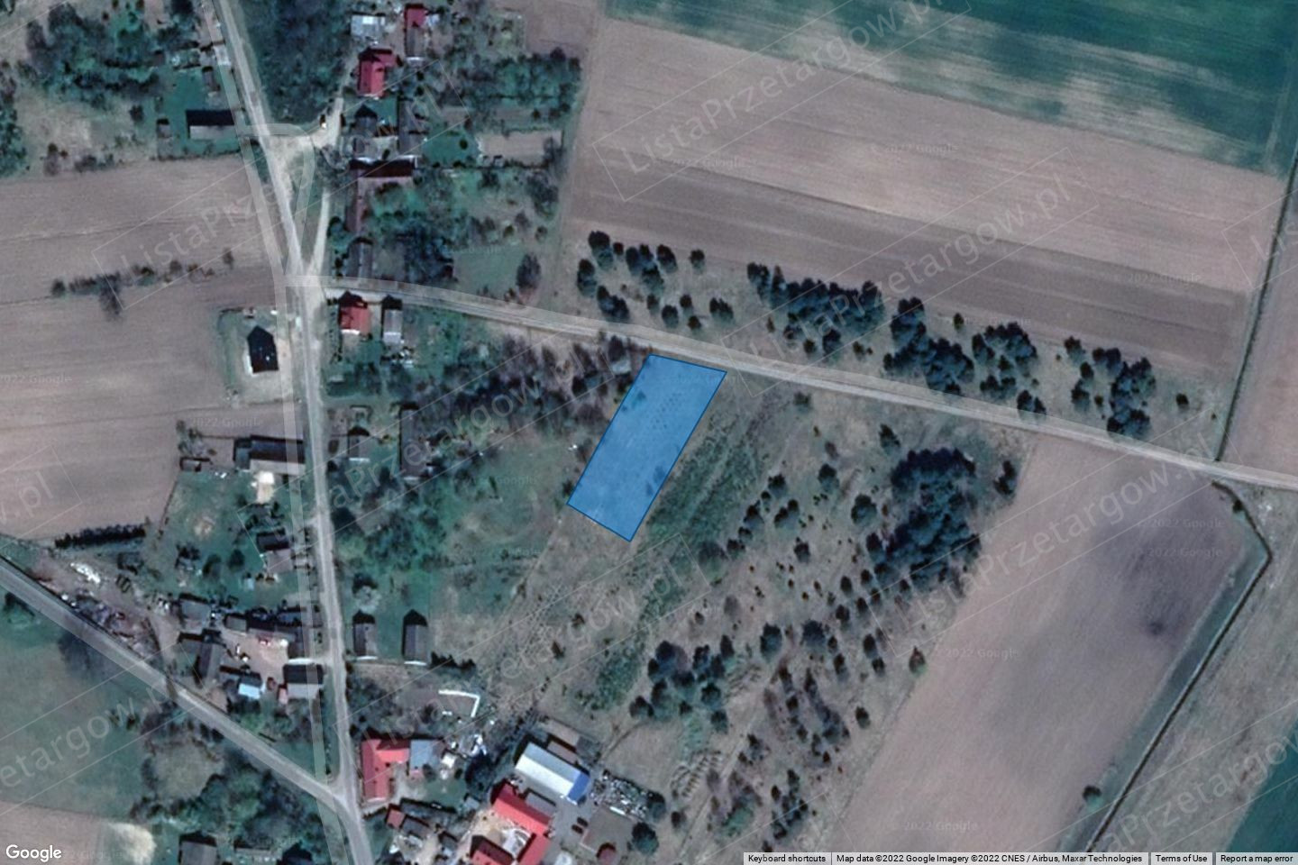 Według danych z ewidencji gruntów i budynków ogólna powierzchnia nieruchomości wynosi: 0,2100 ha,