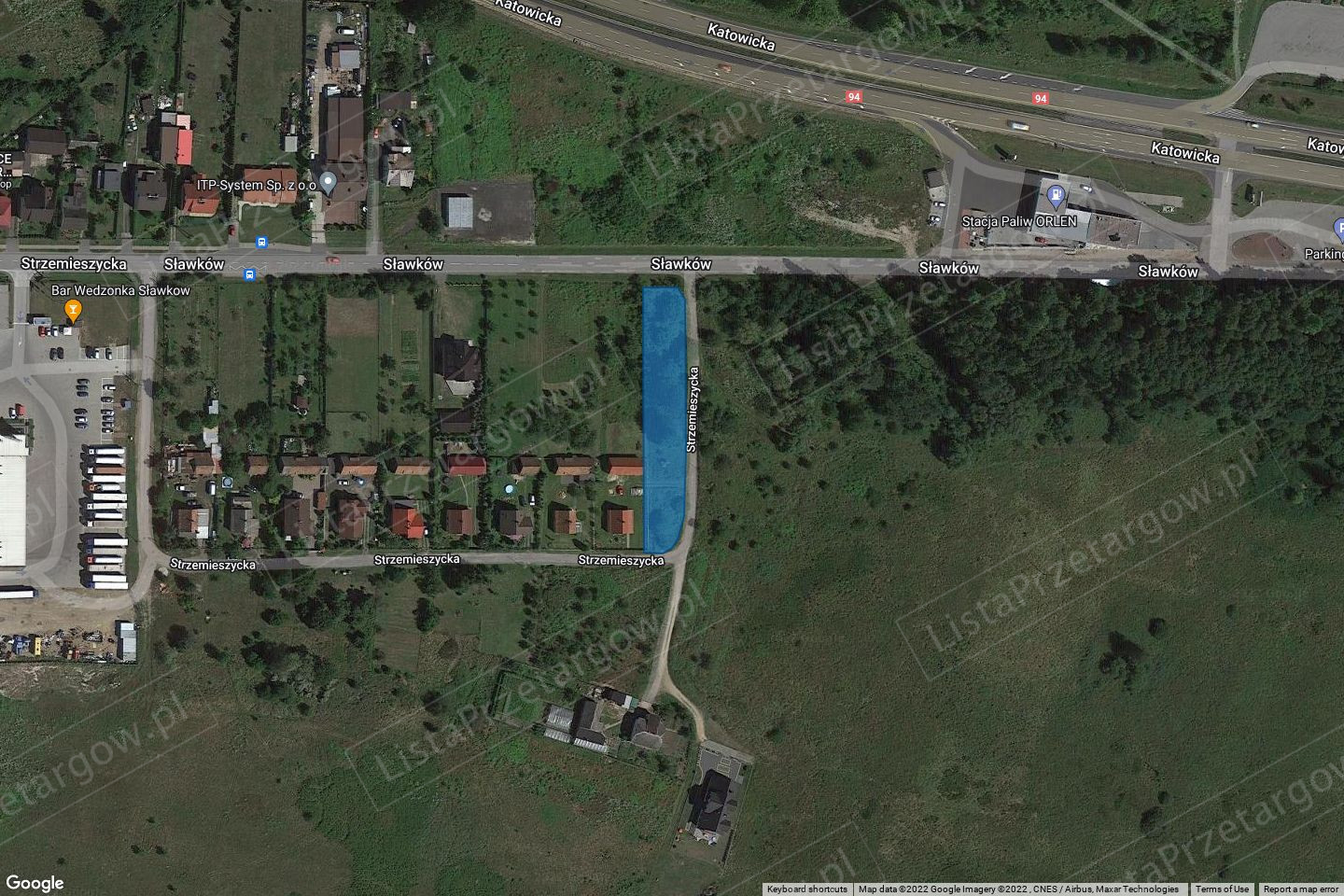 działka nr 2223/1 o pow. 0,1778 ha, zapisana w KW nr XXXX/XXXXXXXX/X Sądu Rejonowego w Dąbrowie Górniczej. Działka zlokalizowana w zachodniej części Sławkowa przy ul. Strzemieszyckiej, na pograniczu z Dąbrową Górniczą, niezabudowana, o kształcie zbliżonym do prostokąta, teren płaski. Działka porośnięta drzewami i krzewami. Posiada możliwość przyłączenia instalacji wodociągowej, instalacji elektrycznej. Od strony północnej posiada dostęp do drogi o nawierzchni asfaltowej ul. Strzemieszyckiej, od strony południowej do drogi o nawierzchni gruntowej. W pobliżu znajduje się zabudowa mieszkaniowa, tereny zielone, stacja benzynowa, droga krajowa DK-94. Odległość od placówek handlowo usługowych i użyteczności publicznej, ok. 3500 m.