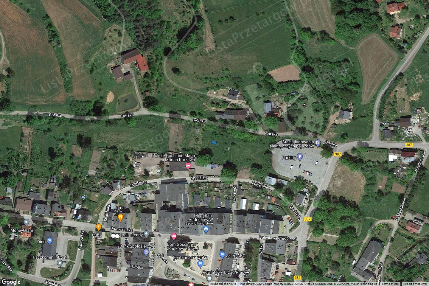 Przedmiotami przetargów są niezabudowane działki gruntu, stanowiące własność gminy Radków, oznaczone geodezyjnie nr 441/3, 441/4, 441/5, 441/6, 441/7 i 441/8 AM-17. Powierzchnia ewidencyjna każdej z działek wynosi 0,0023 ha. Działki położone są w Radkowie. Zgodnie z danymi z ewidencji gruntów i budynków w/w działki sklasyfikowane są jako pastwiska trwałe (PsIV). Dla w/o nieruchomości w Sądzie Rejonowym w Kłodzku V Wydziale Ksiąg Wieczystych urządzona jest księga wieczysta nr XXXX/XXXXXXXX/X.
