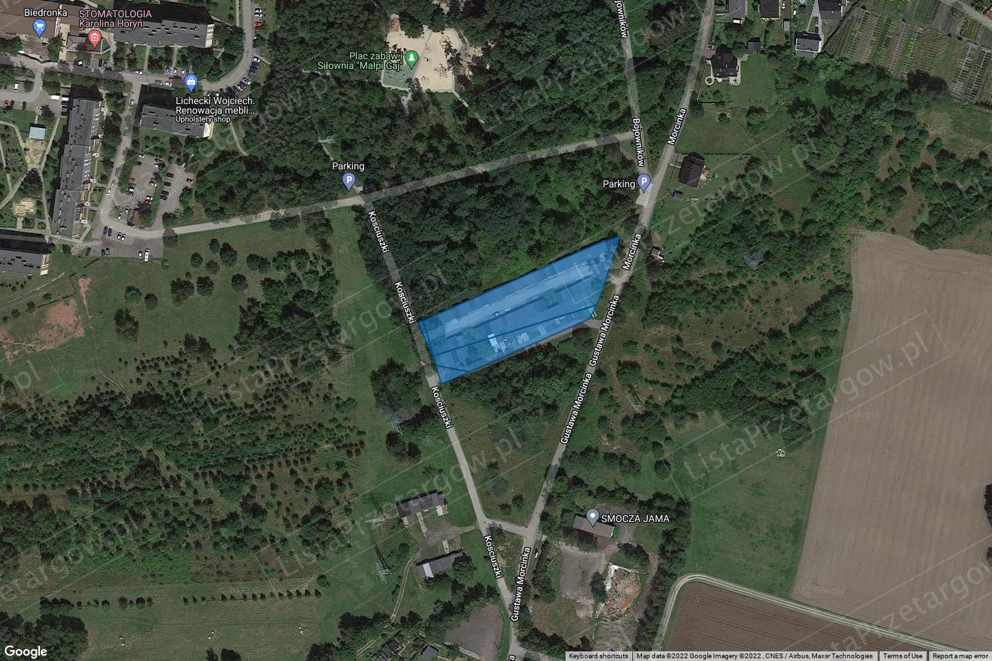 Cena wywoławcza pojedynczego udziału, ustalona na podstawie operatu szacunkowego z dnia 16 grudnia 2021 roku, sporządzonego przez rzeczoznawcę majątkowego, wynosi 3 057,00 zł (netto). Uwaga! Wylicytowana cena zakupu udziałów w prawie własności nieruchomości zostanie powiększona o 23% podatek VAT. Forma zbycia: sprzedaż prawa własności dwóch udziałów, po 1/93 każdy, w nieruchomości gruntowej. Nieruchomość gruntowa obejmująca działki oznaczone numerami 4021/203, 4022/203, 4024/204 oraz 4026/200 położona jest w Łaziskach Górnych, obręb Łaziska Średnie, przy ulicy Morcinka, k. m. 1.
