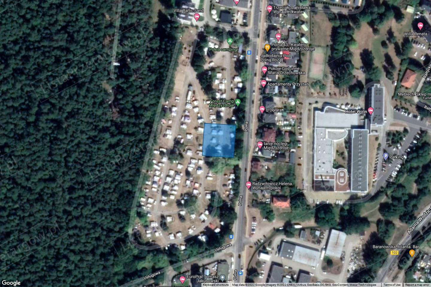 Nieruchomość niezabudowana położona w Międzyzdrojach, przy ulicy Polnej.