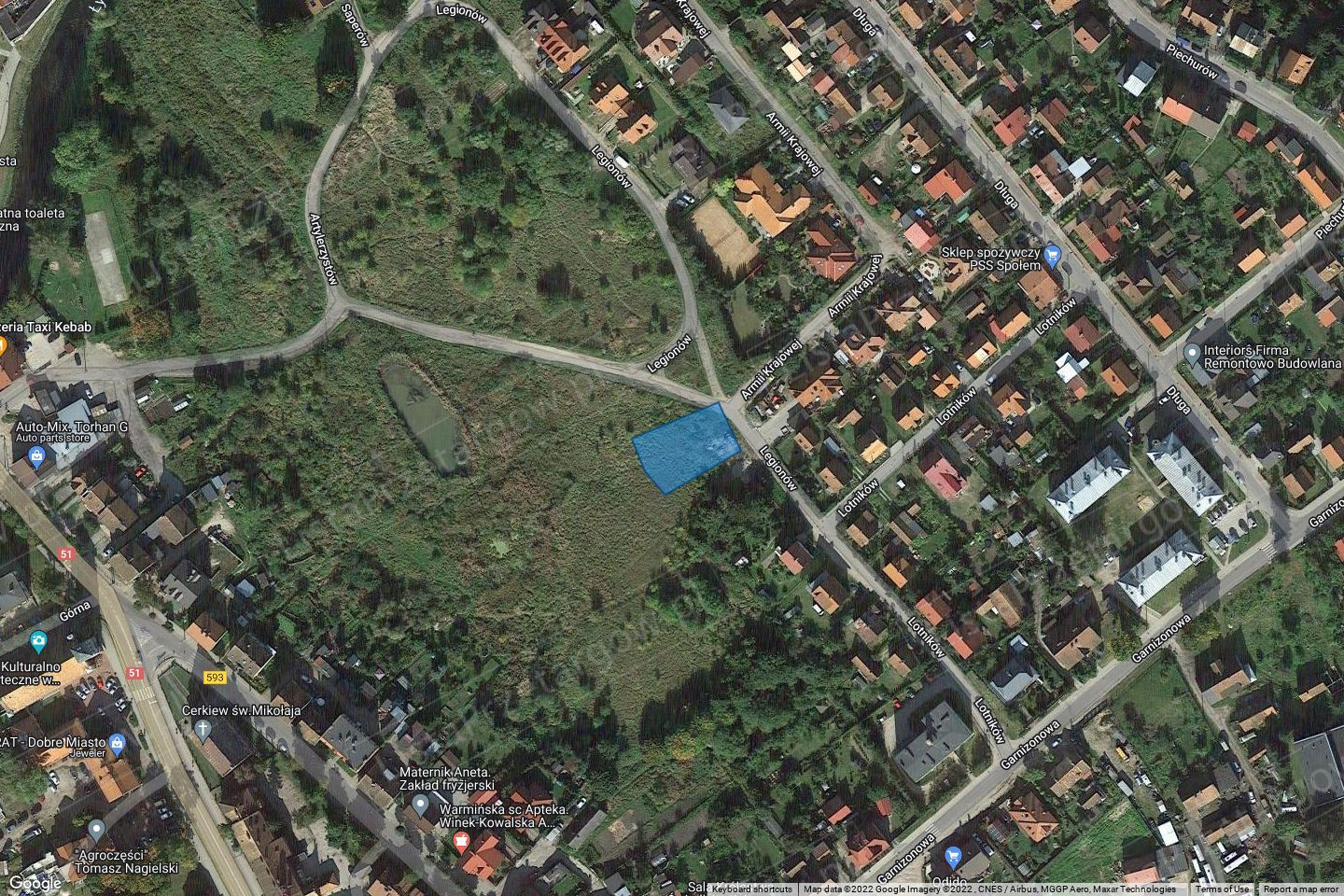 Działki gruntowe oznaczone nr 829 i 830 położone są we wschodniej części Dobrego Miasta, na osiedlu z zabudową mieszkalną jednorodzinną, przy ul. Legionów