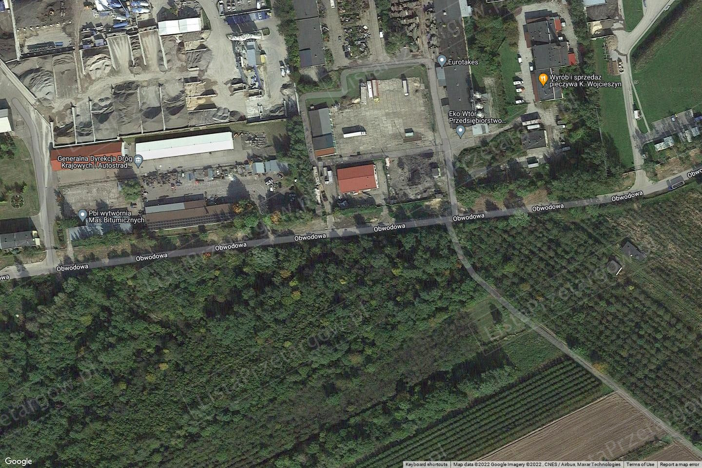 Nieruchomość położona jest w strefie peryferyjnej miasta, na terenie dzielnicy Kraśnik Stary w pobliży ul. Kolejowej – głównej ulicy dzielnicy, na skraju terenów usługowo – przemysłowych o średniej intensywności, w drugim rzędzie zabudowy, bezpośrednio przy ul. Obwodowej, w pobliżu drogi ekspresowej S-19 Lublin-Rzeszów (przy czym brak wjazdu), w odległości około 1 km od ważnego węzła komunikacyjnego miasta – skrzyżowanie trzech głównych ulic Lubelskiej, Przemysłowej i Kolejowej, stanowiącego równocześnie część drogi krajowej nr 19 relacji Lublin – Rzeszów oraz w odległości około 1 km od stacji kolejowej. Otoczenie nieruchomości: od strony zachodniej - zabudowa usługowo – przemysłowa i tereny inwestycyjne niezagospodarowane, od strony wschodniej i południowej ul. Obwodowa, od strony północnej – tereny inwestycyjne, niezagospodarowane. Działka o nieregularnym kształcie, wieloboku, teren płaski, niezagospodarowany. Dojazd z ul. Obwodowej, aktualnie brak urządzonego zjazdu. Infrastruktura: linia elektroenergetyczna, wodociągowa i kanalizacji sanitarnej – przebiega w przyległej ul. Obwodowej.
