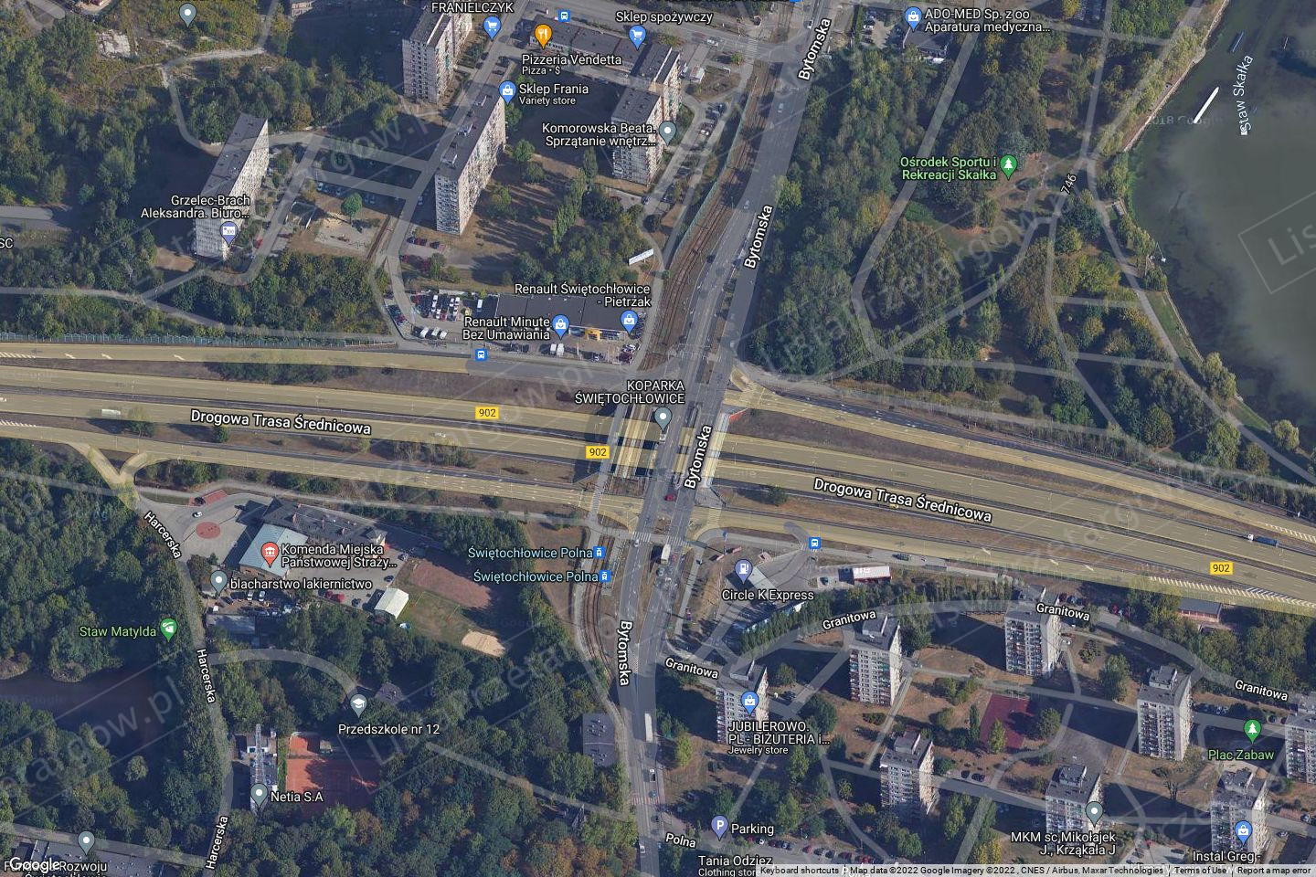 Drogową Trasą Średnicową a południowym akwenem stawu „Marcin” i Hutą Pokój SA,