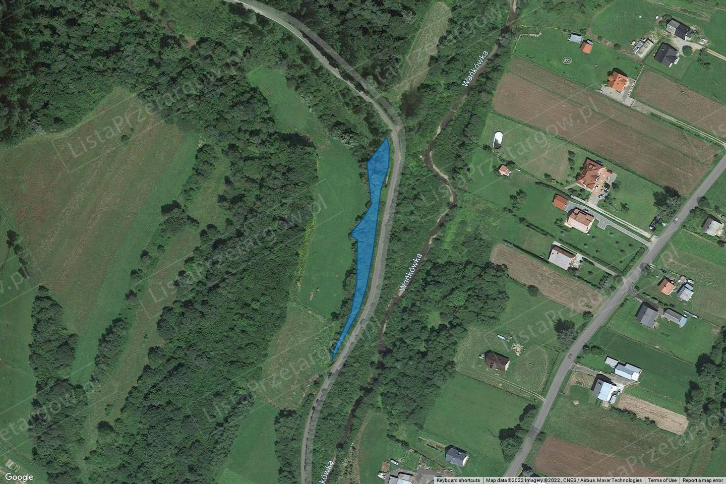 4. Opis nieruchomości – nieruchomość niezabudowana, położona w północnej części miejscowości. Obszar porośnięty roślinnością łąkową, zakrzaczeniami typowymi dla terenów nad ciekami wodnymi, głównie wierzby. Jest to teren peryferyjny zabudowy mieszkaniowej siedliskowej miejscowości. Sąsiedztwo stanowią tereny niezainwestowane, po wschodniej stronie potok Wańkowa, za którym znajduje się pas zabudowy zagrodowej, mieszkaniowej.