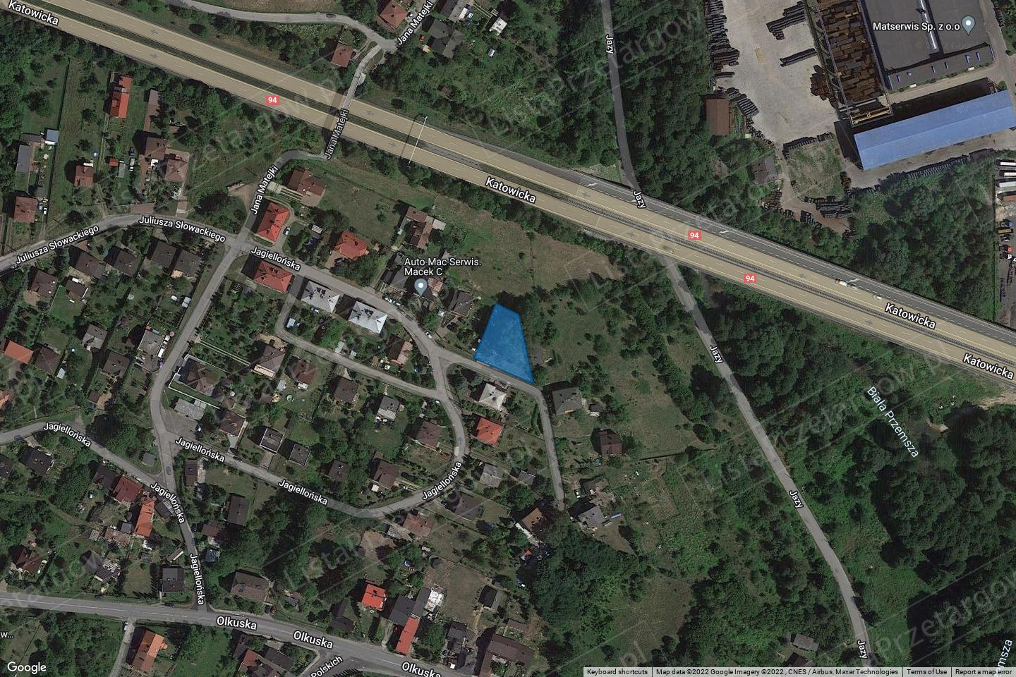 Działka 2076 położona jest przy ul. Jagiellońskiej, w odległości około 0,6 km od centrum miasta. Dostęp do infrastruktury dobry. W pobliżu rozproszona zabudowa mieszkaniowa, tereny zielone, droga DK 94. Kształt działki zbliżony do trapezu. Działka porośnięta pojedynczymi drzewami. Na nieruchomości znajduje się nieczynne szambo betonowe o kubaturze około 200 m³ i głębokości około 3 m, będące pozostałością dawnej infrastruktury obsługującej bloki komunalne.
