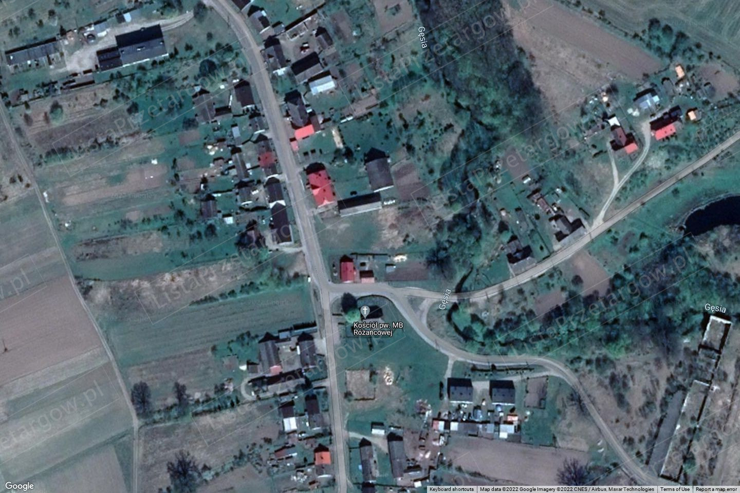 o nawierzchni asfaltowej, od strony północno-wschodniej. Wokół przylegają działki niezabudowane, które