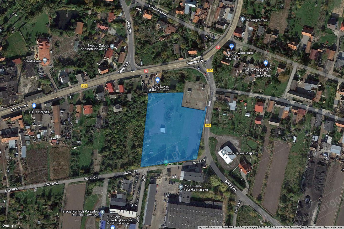 1. Przedmiotem przetargu jest działka o numerze ewidencyjnym 1849 o powierzchni 0,8702 ha, położona w jednostce ewidencyjnej Wschowa – miasto, która wchodzi w skład zasobu nieruchomości Skarbu Państwa. Przedmiotowa działka zlokalizowana jest w pośredniej części miasta przy drodze wojewódzkiej 305. Kształt regularny, zbliżony do prostokąta, teren płaski. Dojazd do nieruchomości odbywa się drogą o nawierzchni z płyt betonowych od strony Alei PCK. Bezpośrednie sąsiedztwo stanowią grunty zabudowane budynkami mieszkalnymi, tereny obiektów produkcyjnych, składów i magazynów oraz zabudowy usługowej, tereny infrastruktury technicznej – gazownictwa. W dalszym sąsiedztwie – zabudowa mieszkaniowa oraz podstawowa baza placówek zaplecza bytowego. Rejon lokalizacji nieruchomości posiada pełne wyposażenie w sieci infrastruktury technicznej. W granicach działki (północno-zachodni narożnik działki) przebiega czynny gazociąg wysokiego ciśnienia DN 80. W granicach nieruchomości znajduje się niewykazany w ewidencji gruntów i budynków budynek gospodarczy o powierzchni ok. 40 m², w złym stanie technicznym, zbudowany z pustaków oraz ruiny nieistniejącego już budynku. Ponadto z informacji zawartych na mapie zasadniczej prowadzonej w postaci hybrydowej dla miasta Wschowa wynika, iż na działce znajdują się trzy studnie, z czego tylko jedna (w części północnej działki) widoczna jest w terenie. Oznaczenie użytków i konturów klasyfikacyjnych według ewidencji gruntów i budynków: ŁIII o powierzchni 0,6415 ha oraz RIIIa o powierzchni 0,2287 ha. 2. Stosownie do zmiany miejscowego planu zagospodarowania przestrzennego miasta Wschowy i terenów funkcjonalnie z nim związanych – część południowa zatwierdzonym Uchwałą nr XXXVIII/425/13 Rady Miejskiej we Wschowie z dnia 30 grudnia 2013 r. (Dz. Urz. Woj. Lubuskiego z 2014 r., poz. 226) przedmiotowa działka leży na terenie oznaczonym w części symbolem „3MN/U” – tereny zabudowy mieszkaniowej jednorodzinnej lub zabudowy usługowej lub zabudowy mieszkaniowej jednorodzinnej z usługami, w części „2ZP” – tereny zieleni urządzonej oraz w części na terenie oznaczonym symbolem „KDZ” – droga/ulica klasy Z. 3. Sąd Rejonowy we Wschowie IV Wydział Ksiąg Wieczystych prowadzi księgę XXXX/XXXXXXXX/X. Dział III i IV księgi wieczystej wolny od wpisów. Obciążenia i zobowiązania dotyczące nieruchomości: Nieruchomość nie jest obciążona ograniczonymi prawami rzeczowymi.