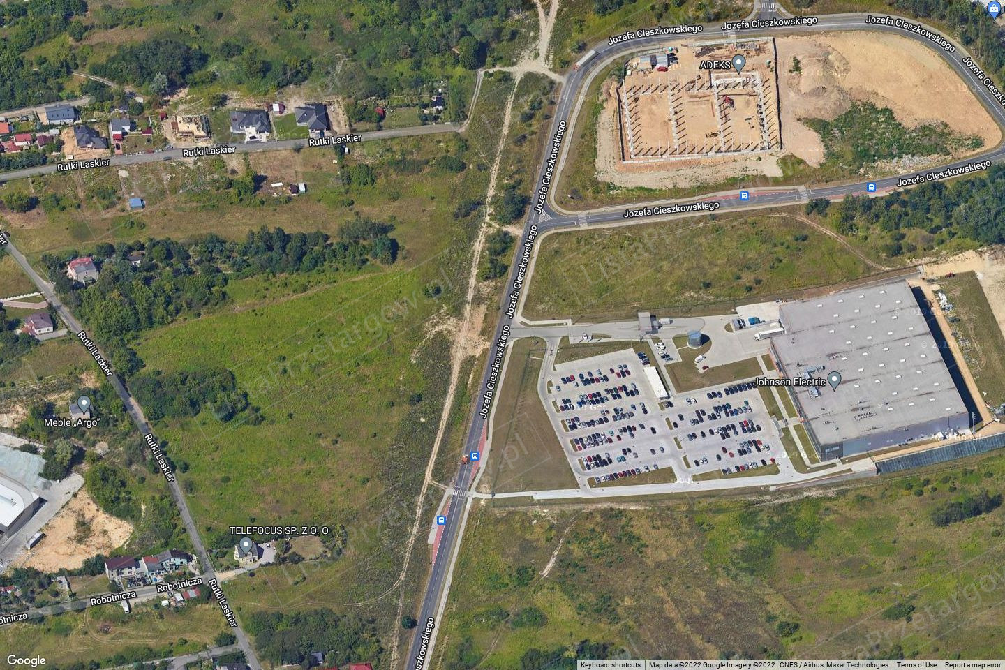 Działka nr 64 o pow. 1 ha 2487 m2 wraz z udziałem wynoszącym 1/6 niewydzieloną część w działce oznaczonej numerem geodezyjnym 71 karta mapy 57 obręb Będzin o pow. ogólnej 6407 m2, stanowiącej wewnętrzną komunikację łączącą działkę inwestycyjną z drogą publiczną - ul. Cieszkowskiego.