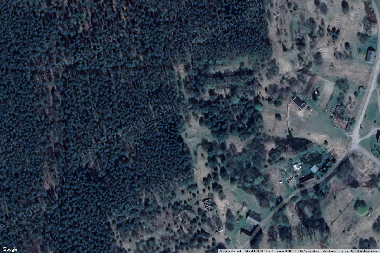 lecz niewidocznej w terenie. Bezpośrednie sąsiedztwo nieruchomości stanowią grunty rolne oraz leśne. W dalszej