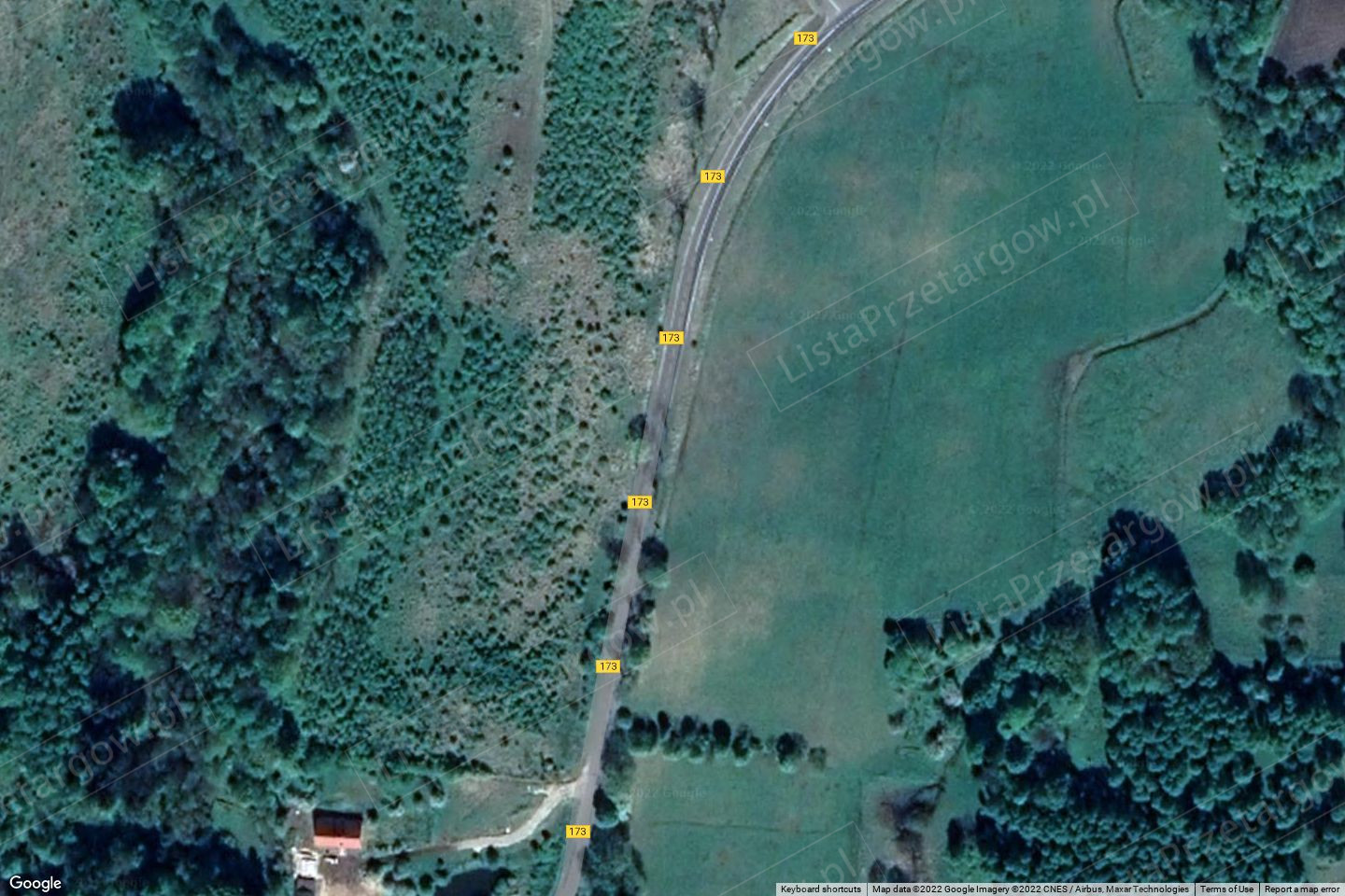 porośnięta drzewostanem. Kształt działki nieregularny, teren pofałdowany. Na działce znajdują się liczne szopki
