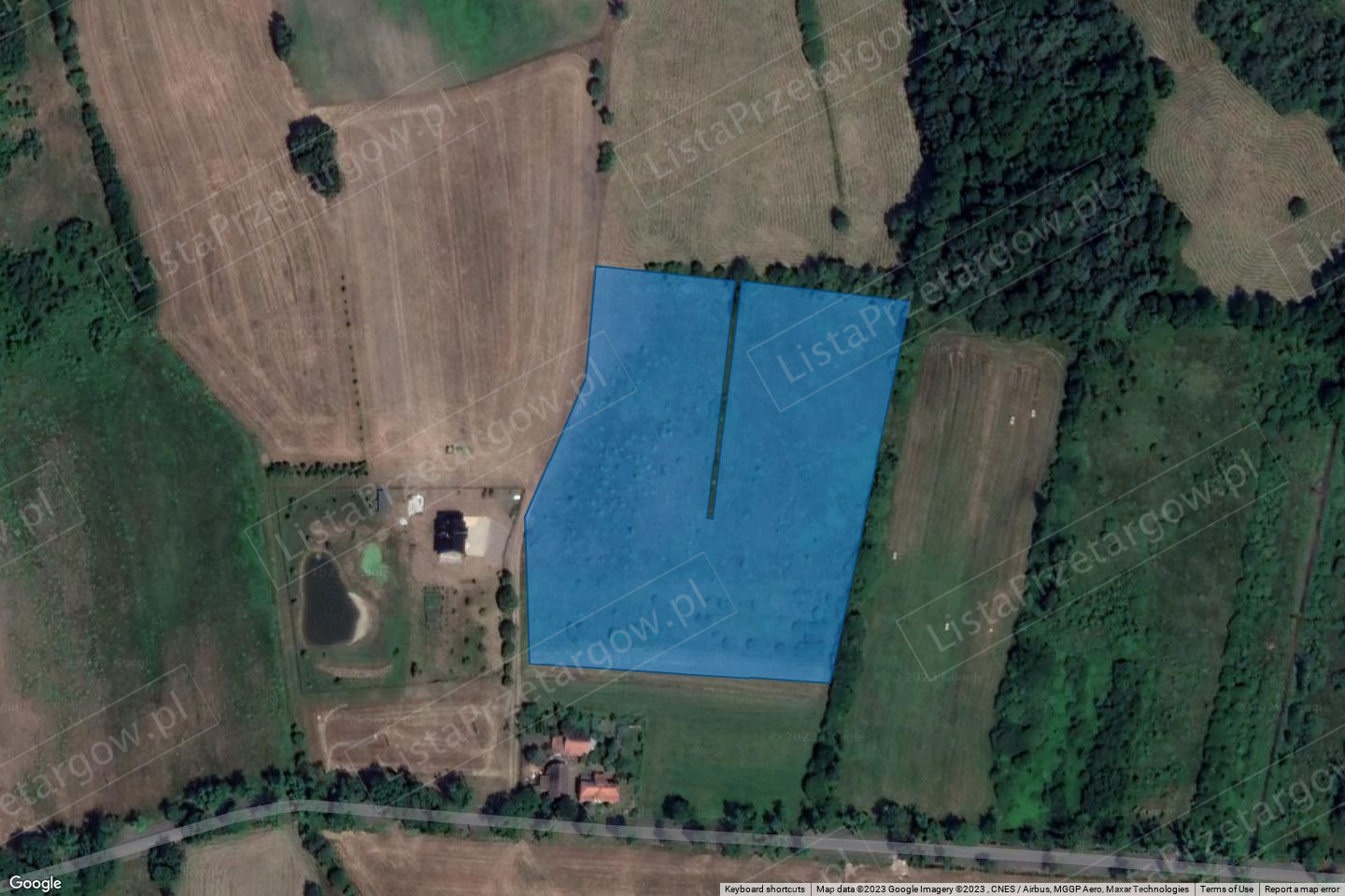 rozdziela go rów melioracyjny. Nachylenie ternu płaskie. Działka jest niezabudowana i nieogrodzona.