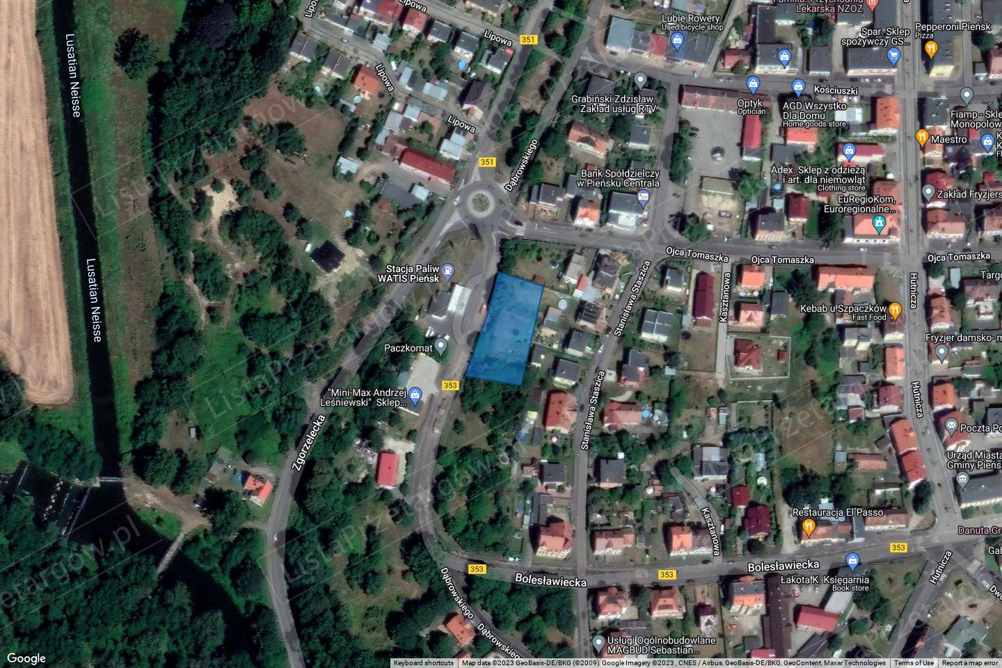 W/w działka gruntu położona jest w Pieńsku (obr. II). Ujawniona jest w księdze wieczystej