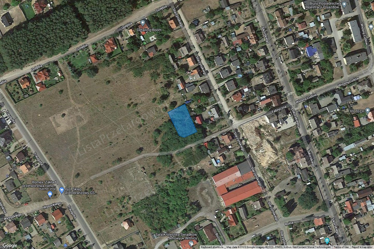 Nieruchomość położona w funkcjonalnej części miasta Witnica, w obszarze zabudowy mieszkaniowej. Dostęp do drogi publicznej gruntową nieurządzonej ul. Jastrzębiej Nr G103972F. Sąsiedztwo i otoczenie stanowią: zabudowa mieszkaniowa jednorodzinna, działki budowlane, tereny leśne. Kształt nieruchomości regularny, prostokątny, teren płaski, porośnięty roślinnością trawiastą oraz pojedynczymi drzewami oraz samosiejami. Na terenie nieruchomości nie wyklucza się wystąpienia elementów uzbrojenia podziemnego i budowli podziemnych oraz odpadów wtórnych, takich jak wysypisko śmieci, gruzu, materiałów budowlanych oraz innych odpadów i zanieczyszczeń - nie uwidocznionych na mapie. Ewentualne koszty związane z ich usunięciem i uporządkowaniem terenu, a także koszty związane z realizacją inwestycji na takim terenie obciążają nabywcę. Uzbrojenie: sieć elektroenergetyczna; do dociągnięcia: sieć wodociągowa, sieć kanalizacji sanitarnej oraz deszczowej, gazowa oraz telekomunikacyjna. Przeznaczenie nieruchomości: Zgodnie z aktualnym planem zagospodarowania przestrzennego miasta Witnica, działka przeznaczona jest na cele zabudowy mieszkaniowej jednorodzinnej – symbol zapisu planu MJ -2.