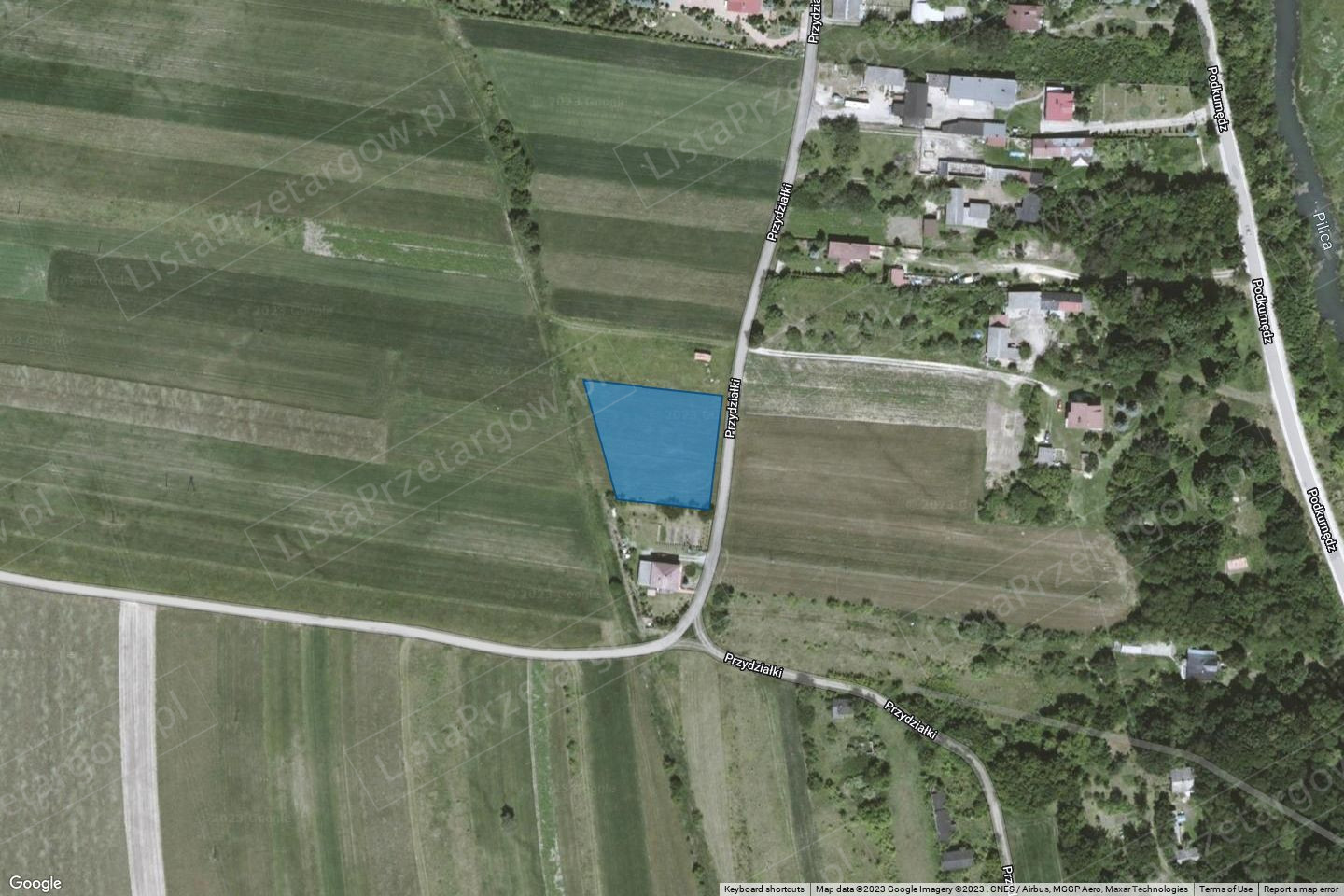 Opis nieruchomości – działka gruntu w kształcie zbliżonym do trapezu, nieogrodzona. Przez północną cześć nieruchomości przebiega gazociąg wysokiego ciśnienia DN 350 MOP 3,2 MPa relacji Piotrków Tryb. – Sworzyce. Działka posiada dostęp do drogi gminnej ul. Przydziałki w Sulejowie, jest w zasięgu gminnej infrastruktury technicznej w postaci sieci: sieci eNN, wodociągowej i kanalizacji sanitarnej.