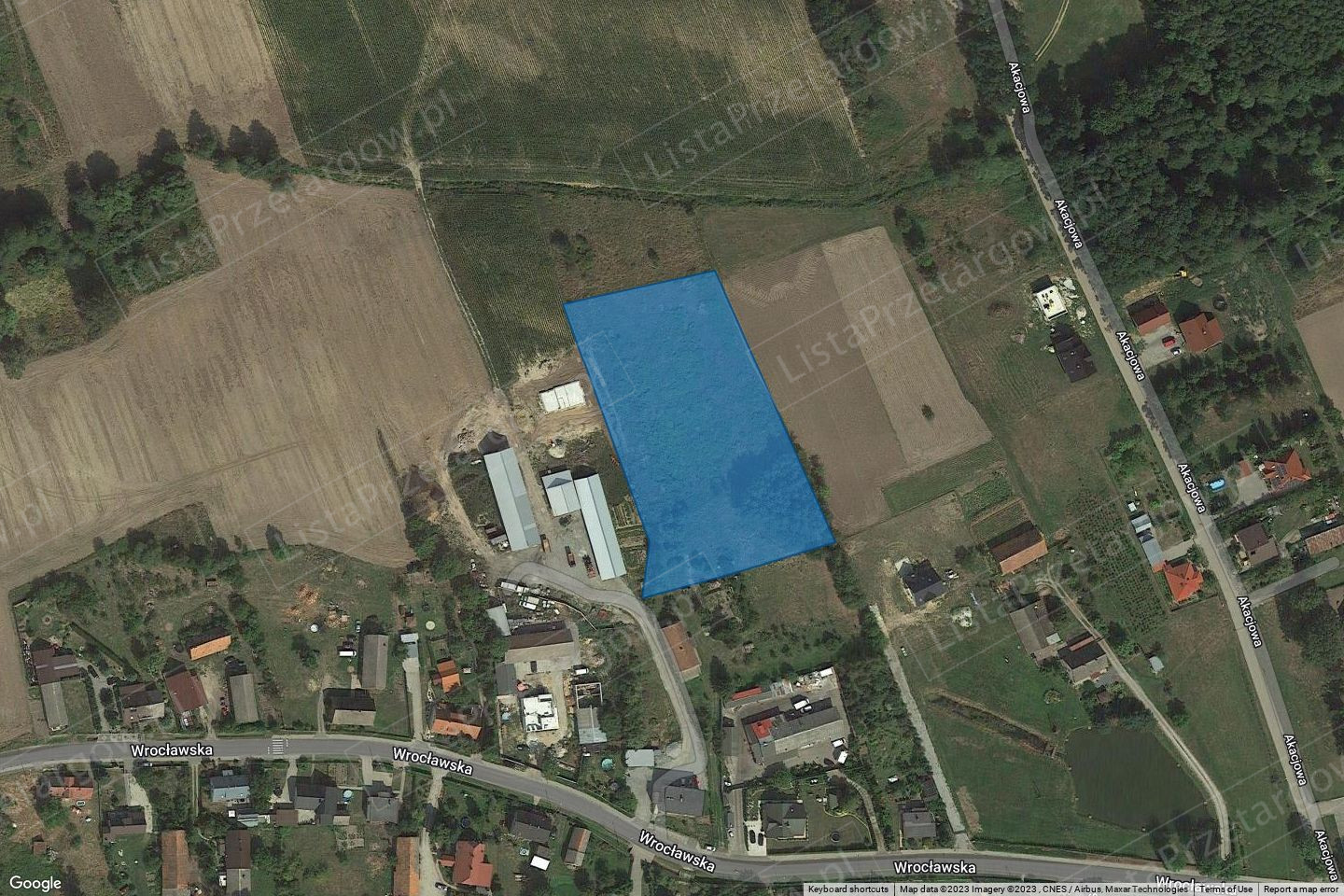 Nieruchomość niezbudowana położenie - województwo dolnośląskie, powiat milicki, gmina Krośnice, obręb Bukowice, nr działek: 150/3 o pow. ewid. 0,8020, 150/4 o pow. ewid. 0,2308. Łączna powierzchnia nieruchomości wynosi 1,0328 w tym w użytkach rolnych (0,5961 o symbolu R, 0,2308 o symbolu Ł, 0,2059 o symbolu Ps). Nieruchomość ujawniona jest w księgach wieczystych nr 29414, 29414.