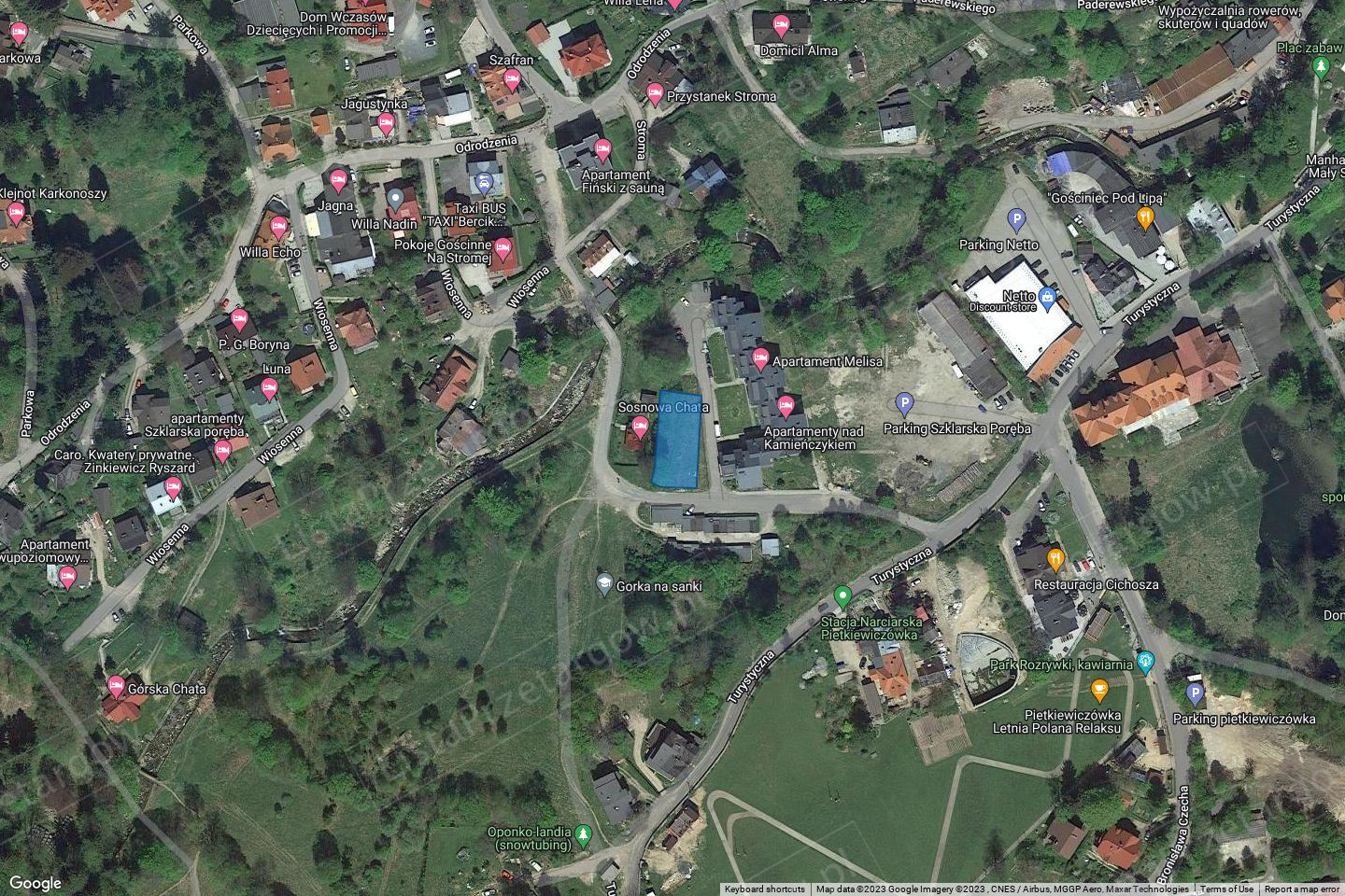 Działka przy ulicy Turystycznej, to przepiękne widoki na Karkonosze i Izery. Działka znajduje się w ścisłym centrum miasta, pobliżu zabudowy mieszkalnej oraz w sąsiedztwie wyciągów narciarskich, w tym wyciągu krzesełkowego na Szrenicę.